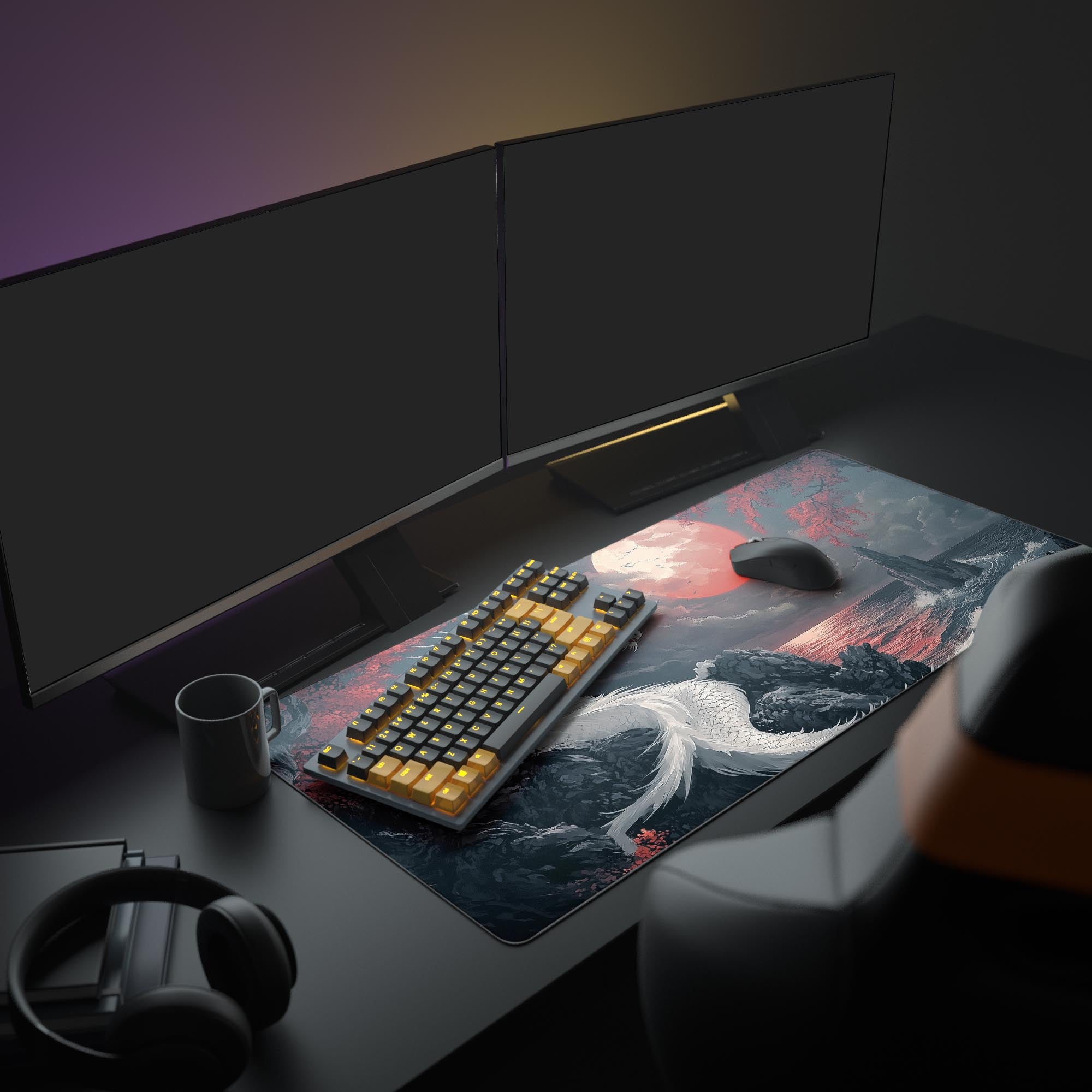Transform your workspace with the Ancient Spirit Desk Pad, where elegance meets functionality. This exquisite desk mat features a majestic white Eastern dragon in a breathtaking fantasy scene, blending traditional Japanese art influences with modern aesthetics. Add an enchanting vibe to your office or gaming setup with this beautifully designed desk accessory.