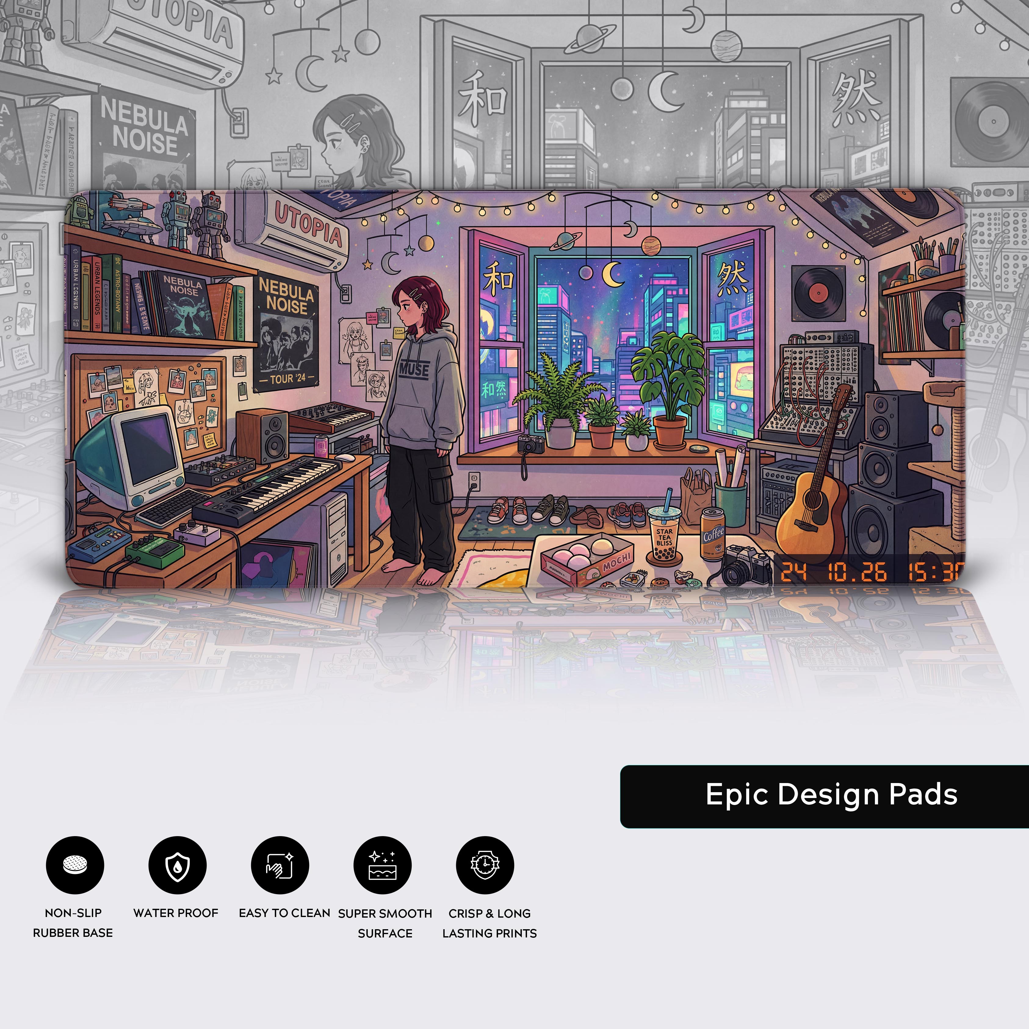 Every detail, from the vintage tech to the midnight boba, is designed to fuel your inspiration. Beyond the stunning vaporwave aesthetic, this mat delivers flawless performance: