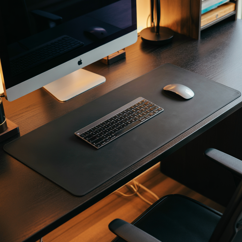 Transform your desk from a zone of chaos to a sanctuary of focus. This pure black desk pad creates a single, unified surface that calms visual noise and lets you sink into deep work. It’s not just an accessory; it’s a tool for achieving mental clarity and peak performance.