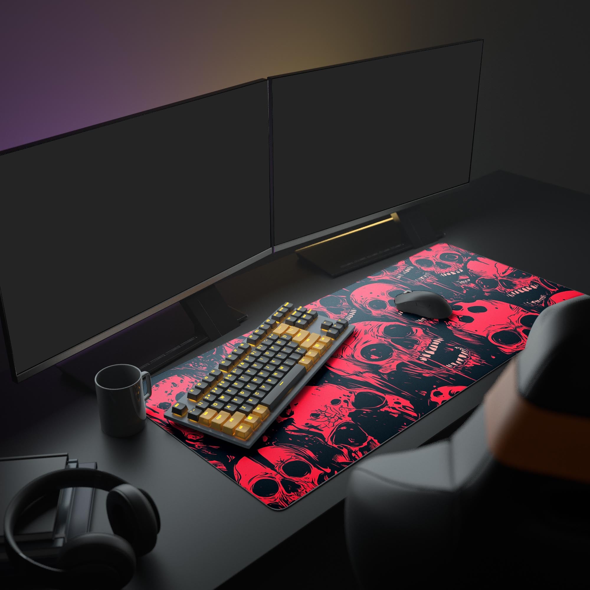 Transform your workspace into a thrilling spectacle with the Zombie Horde Desk Pad. Designed with a vibrant, horror-inspired aesthetic, this desk pad features a chaotic collage of grotesque, screaming red skulls set against a stark black background. The design is filled with exaggerated expressions, dripping textures, and bold black outlines, creating a surreal and terrifying visual that emulates comic book or tattoo art styles.