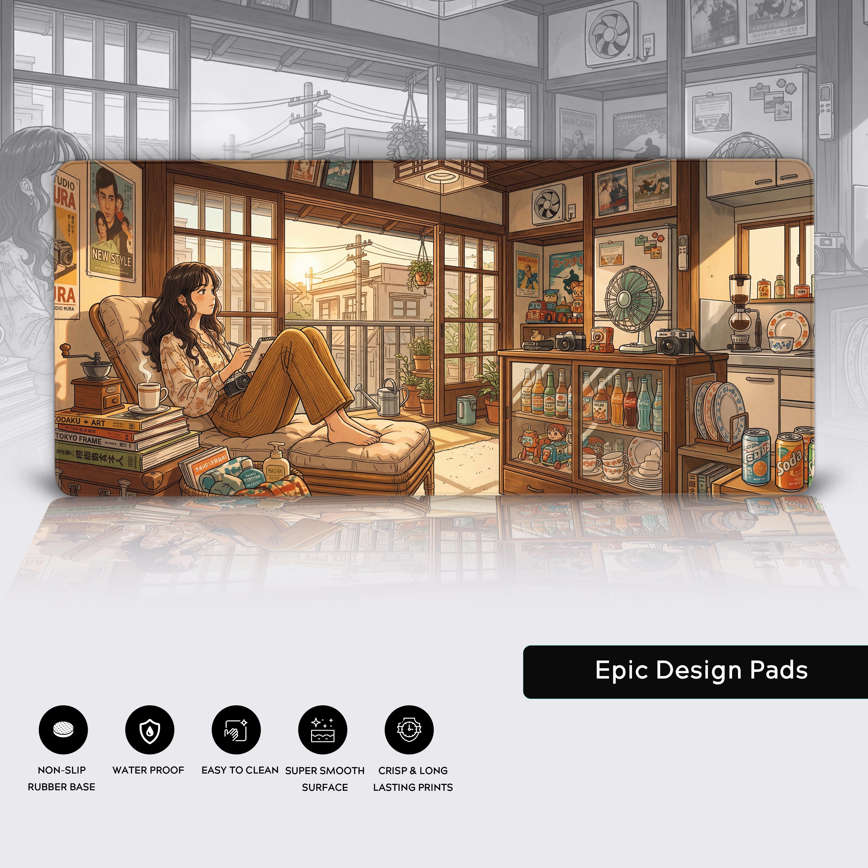 Immerse yourself in a cozy, sunlit room filled with vintage cameras, stacked books, and nostalgic details. It’s more than just a beautiful design; it’s a psychological anchor against the hustle, reminding you to pause, breathe, and romanticize your workflow.