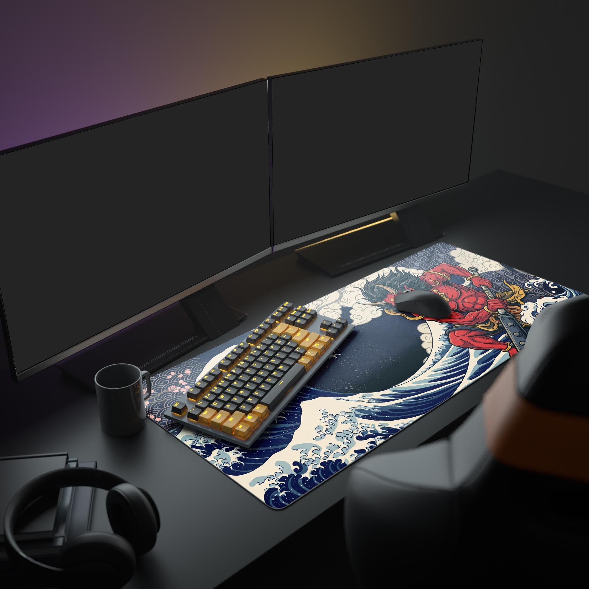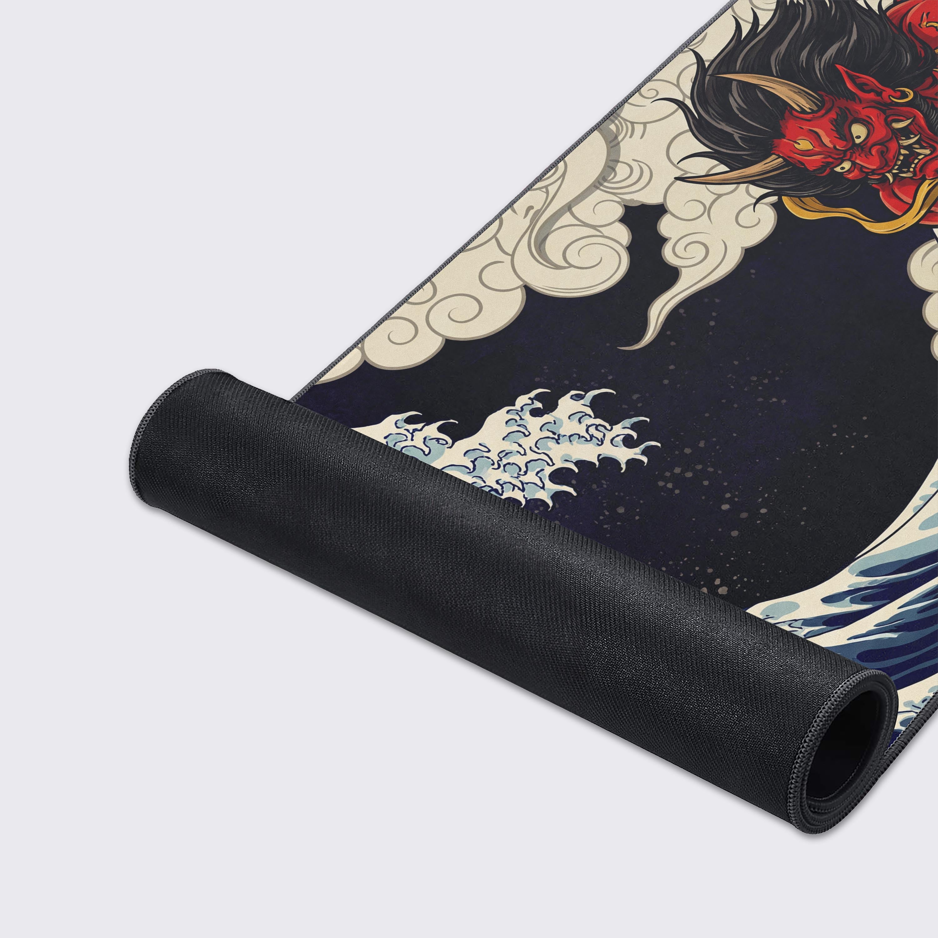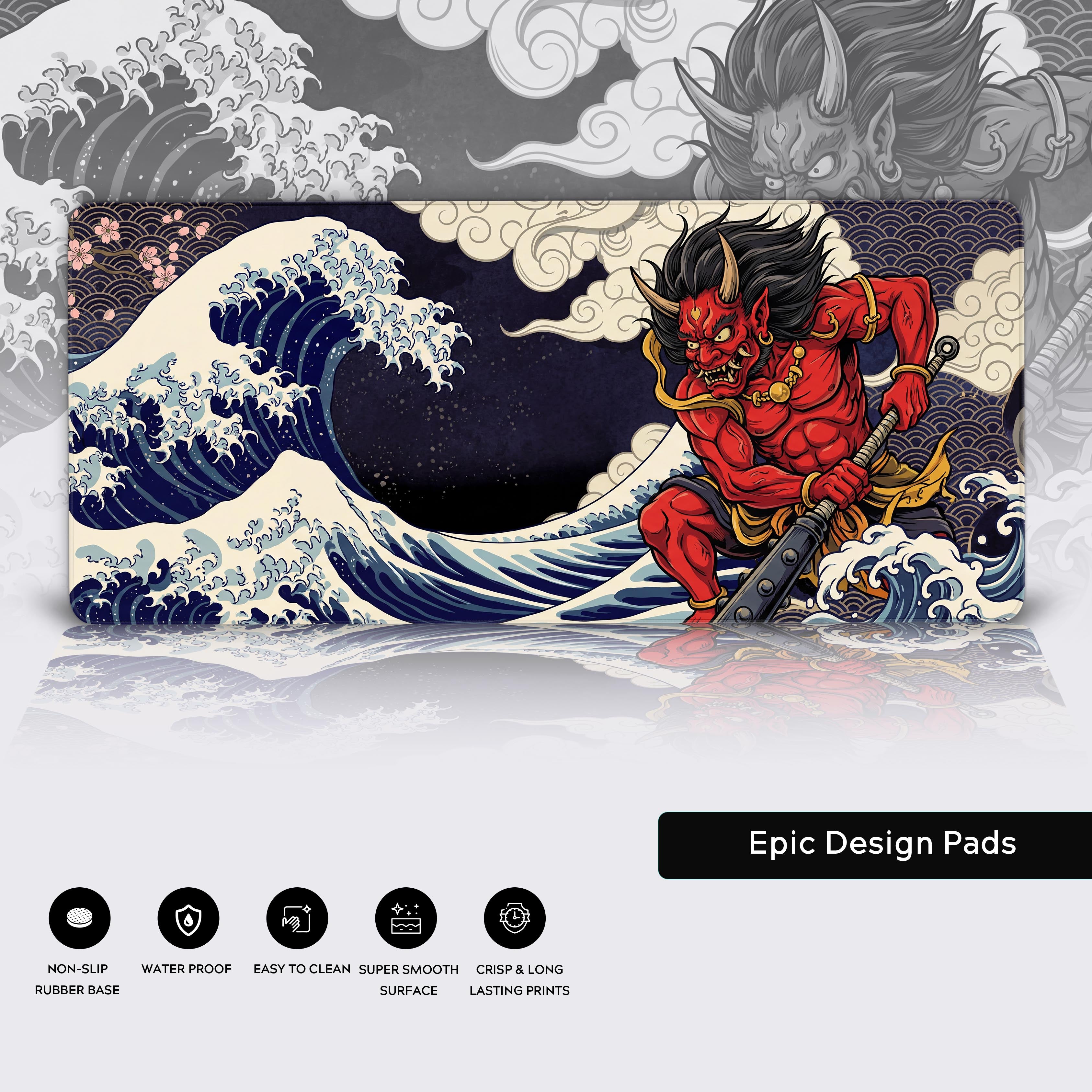 This design fuses the iconic Ukiyo-e wave with the raw power of a Japanese demon, creating a workspace that commands focus and inspires resilience. Beyond its powerful aesthetic, this desk mat offers: