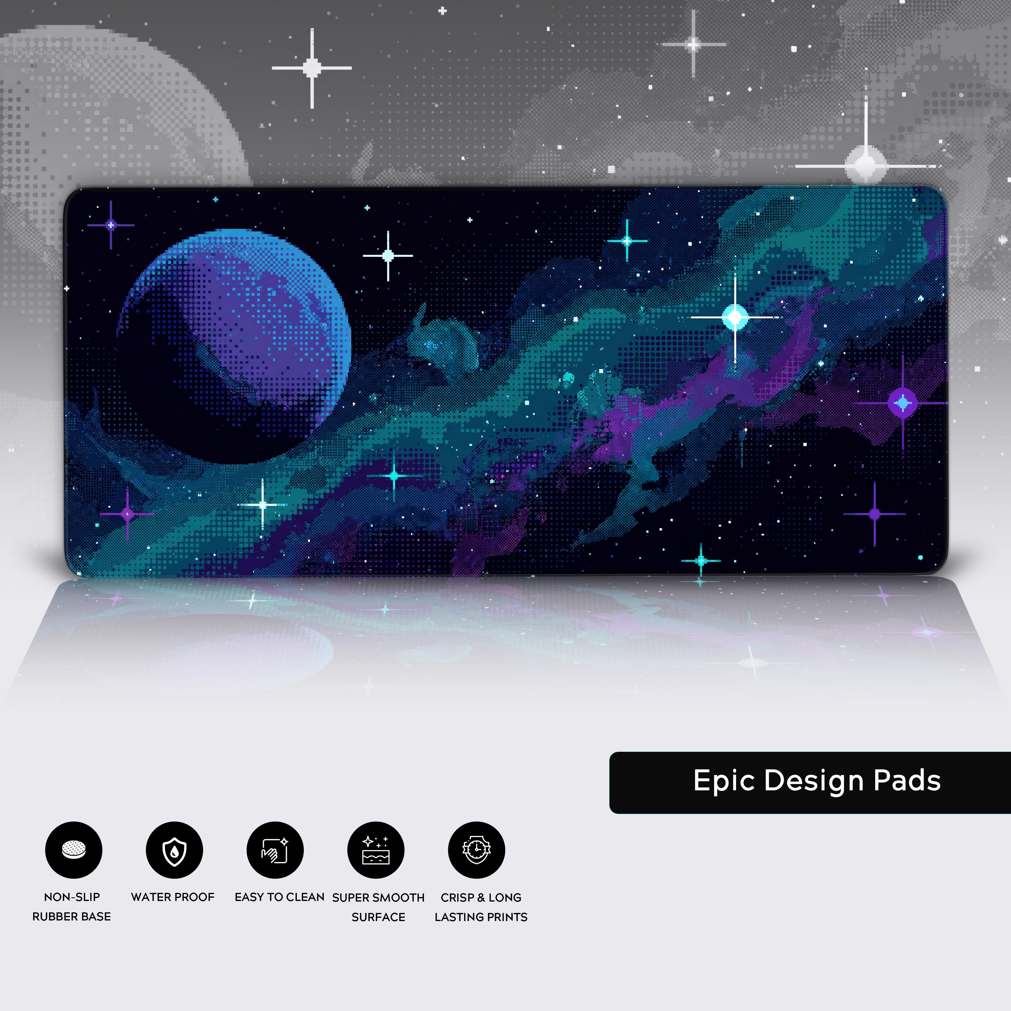 Transform your desk into a monument to the digital age with the 8-Bit Cosmos desk mat. This isn't just another space design; it's a statement. Witness the infinite cosmos rendered through the honest, structured beauty of pixel art, where a vibrant teal and violet nebula is calculated, not just painted.