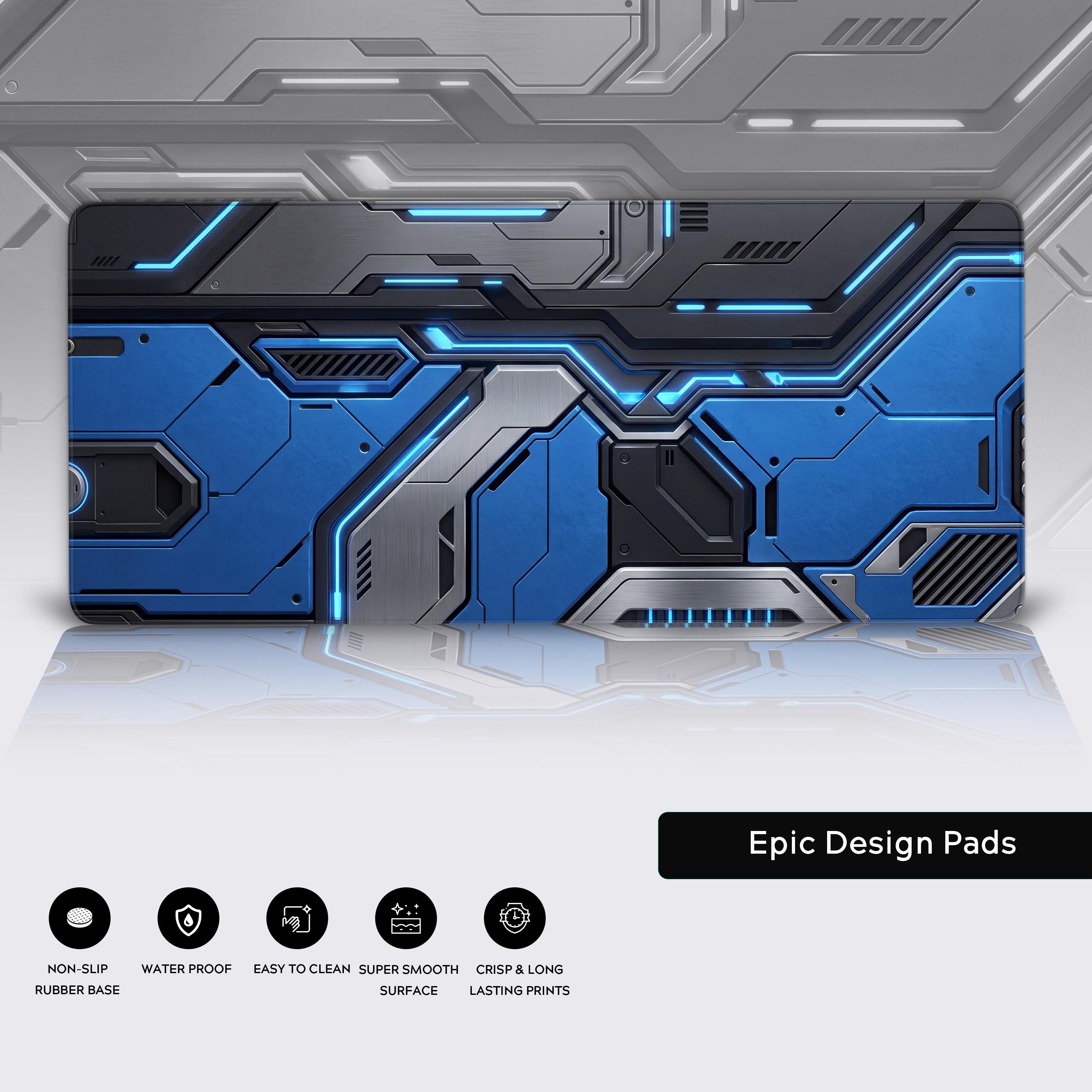 Chaos is the enemy of execution. The Blue Protocol desk mat transforms your workspace into a high-performance command center, engineered for precision and control. Its stunning design mimics the interlocking armor of a high-tech mech or spacecraft, with cool gunmetal plates and glowing blue power lines that signal you're ready for action.