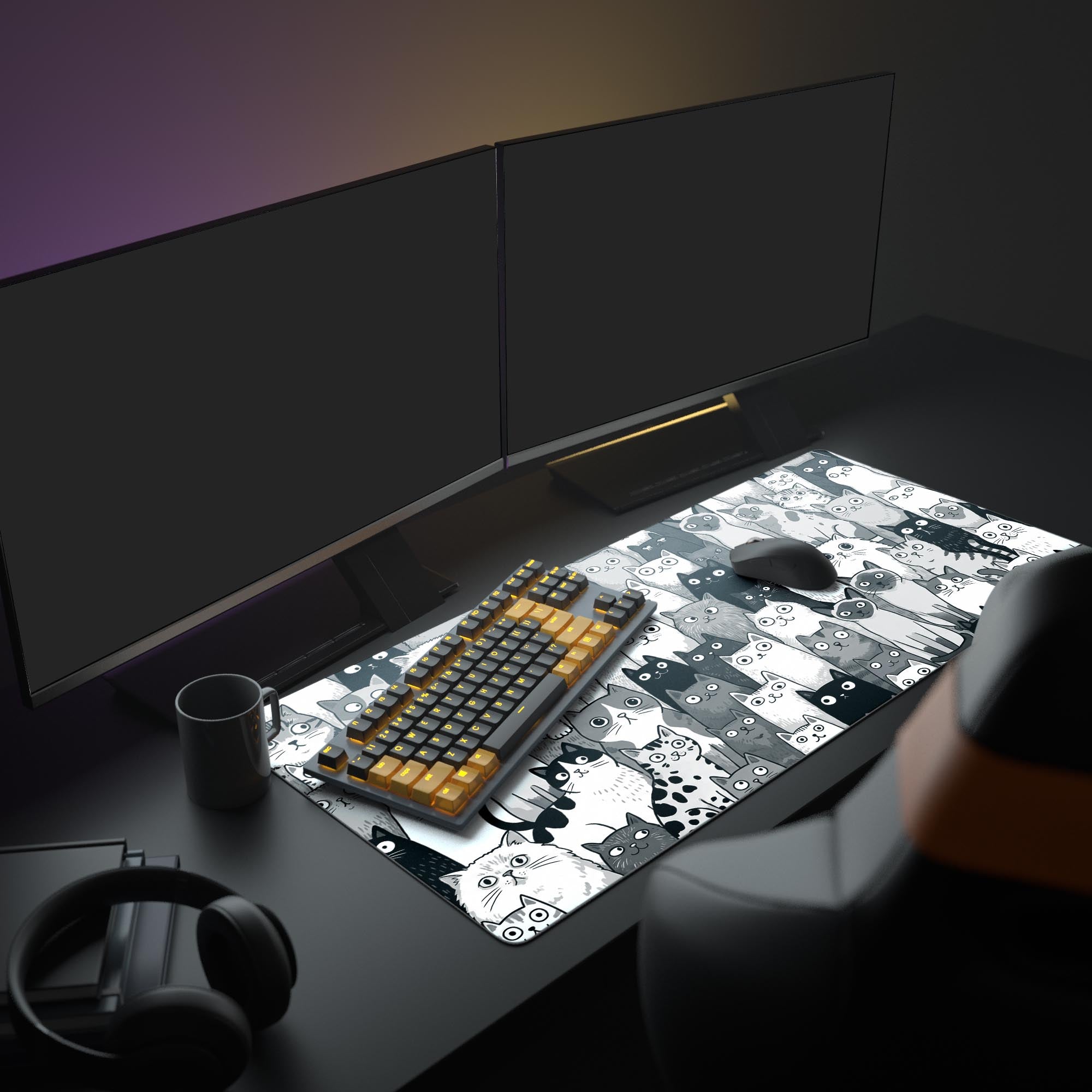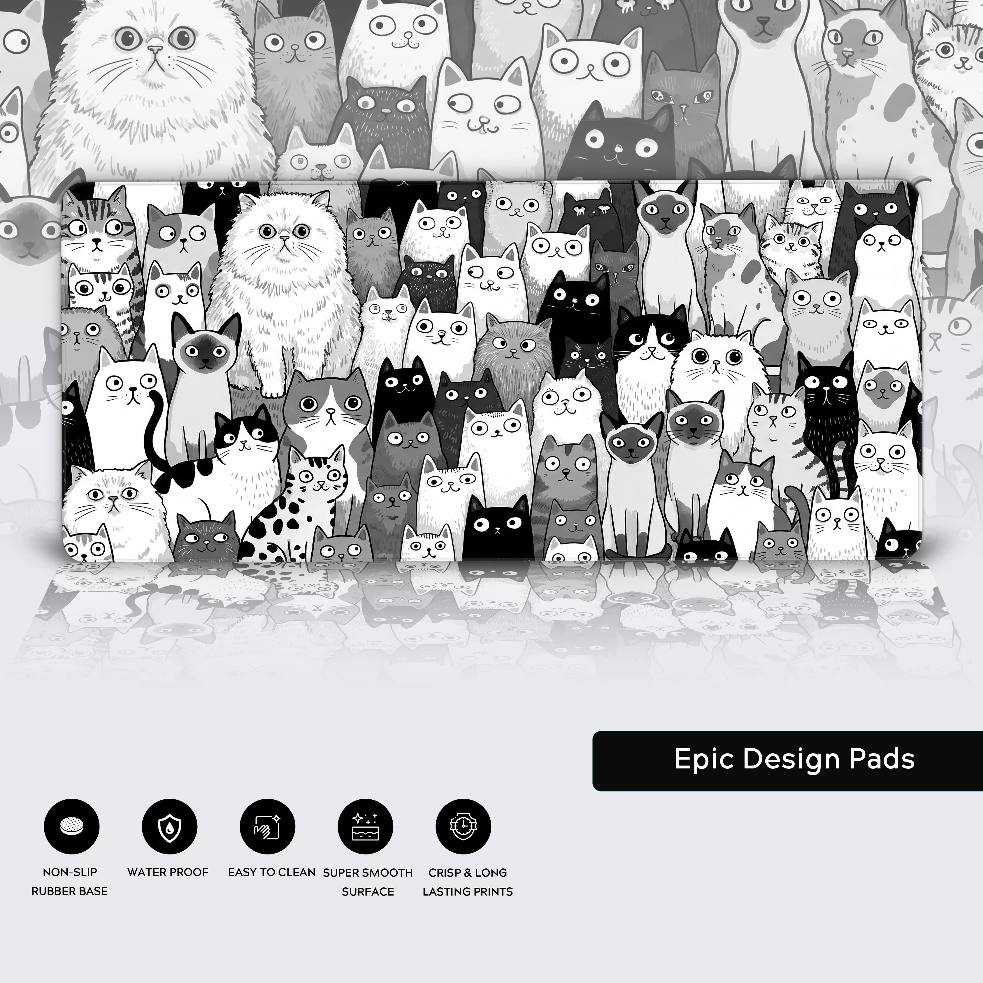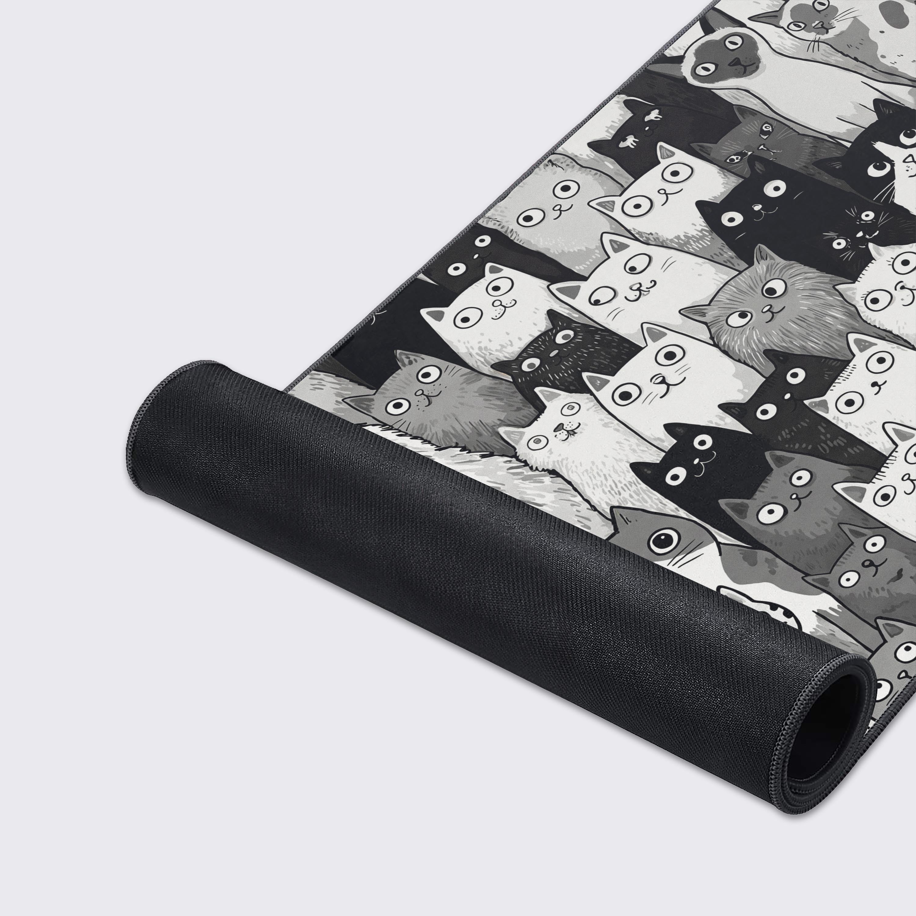 In a world of constant noise, the Feline Collective desk mat is your silent audience. This sea of monochrome faces isn't a distraction—it's your anchor. Each unique gaze holds you accountable, reminding you to focus and conquer your tasks amidst the chaos.