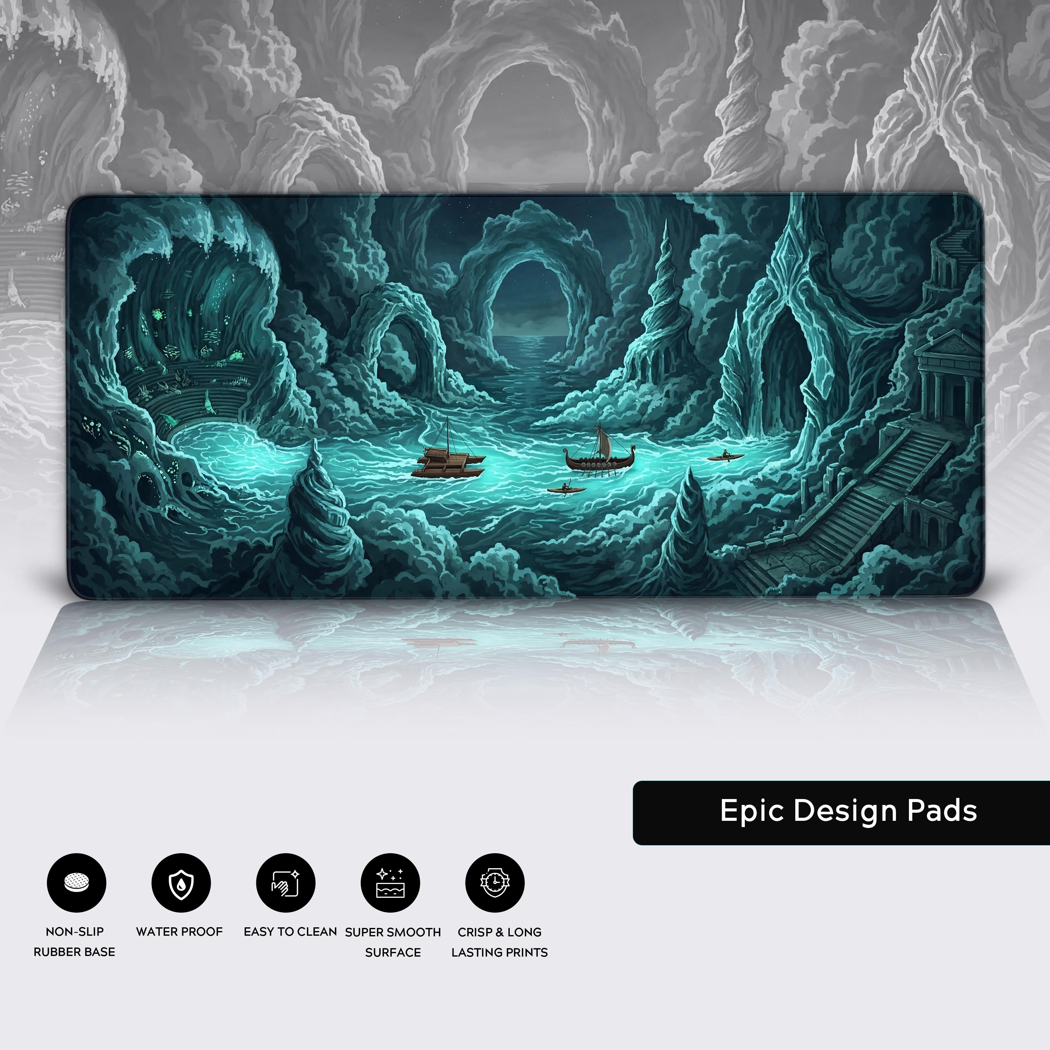 Your desk is no longer just a workspace—it's the edge of the known world. The Forgotten Realm desk mat plunges your setup into an epic discovery, featuring a glowing subterranean sea and towering, cavernous arches that completely alter your room's atmosphere.