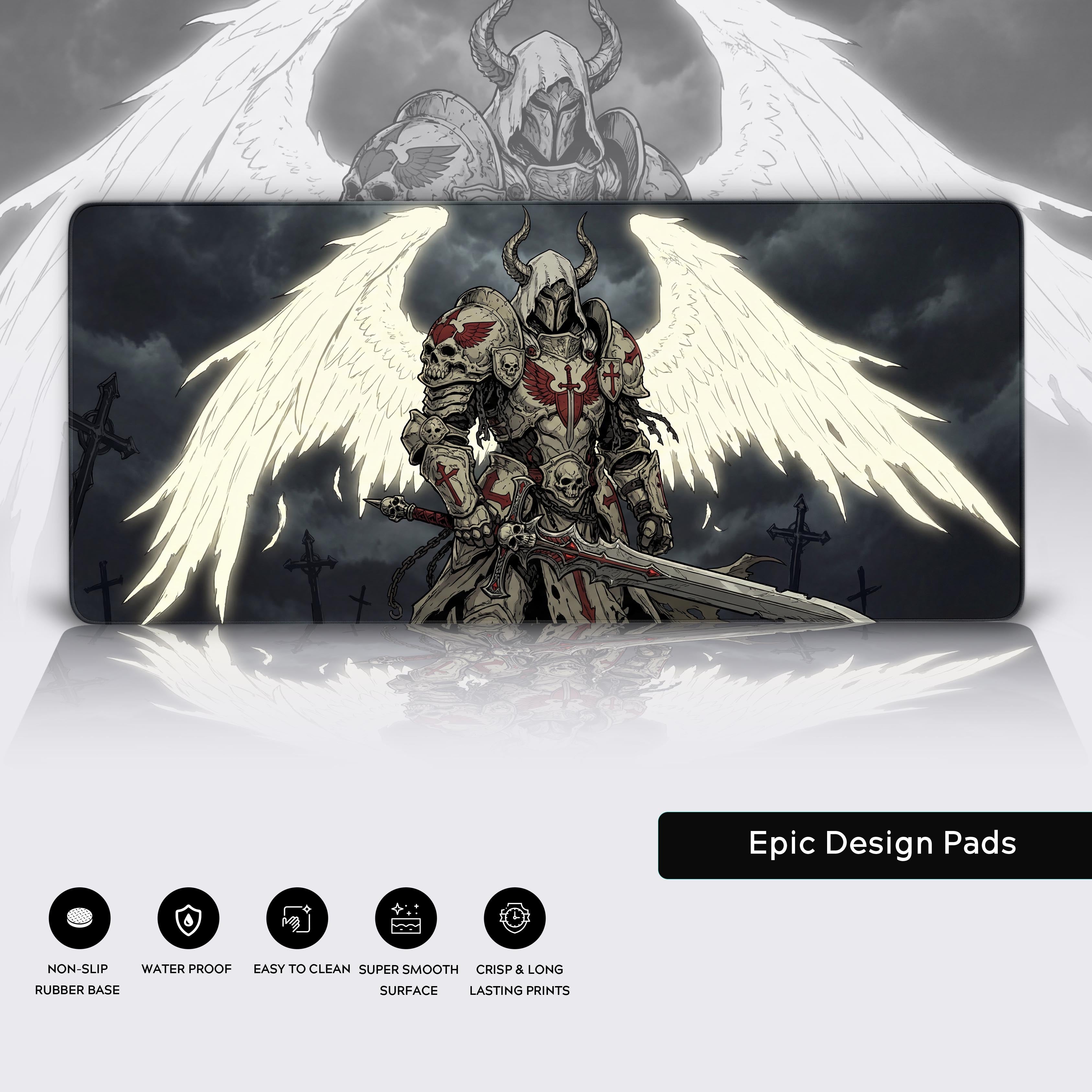 Your desk is a battlefield. Conquer it with the Grim Crusader. This isn't just a symbol of power; it's a declaration of lethal precision against your workload. The stark contrast of battle-scarred armor and blinding white wings embodies the brutal focus required to cut through mediocrity and achieve victory.