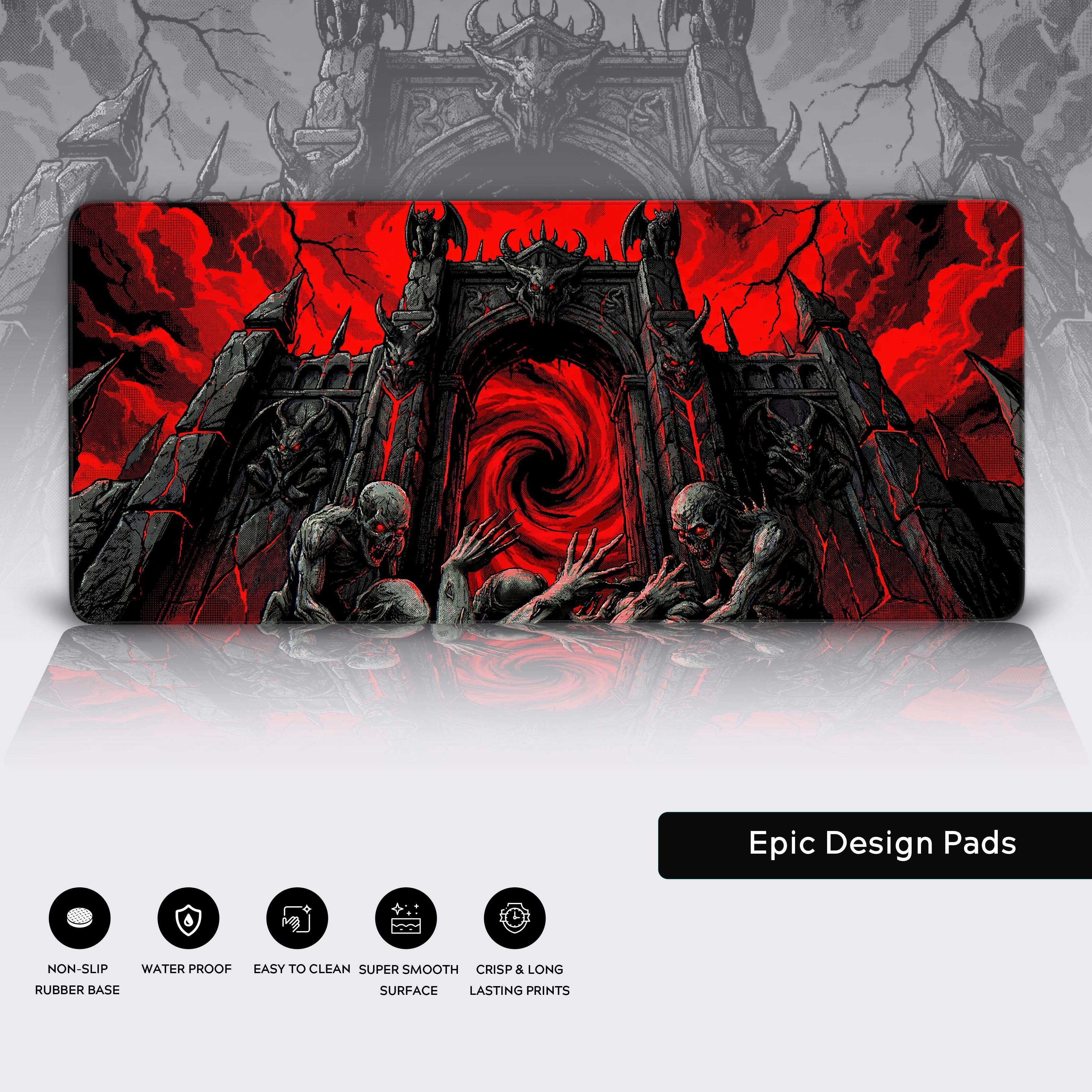 Face the ultimate challenge every time you sit at your desk. The Hell Gate design features a monolithic demonic gate against a blood-red sky, framing a chaotic vortex. It’s a powerful statement piece for those who thrive under pressure and conquer their goals head-on.