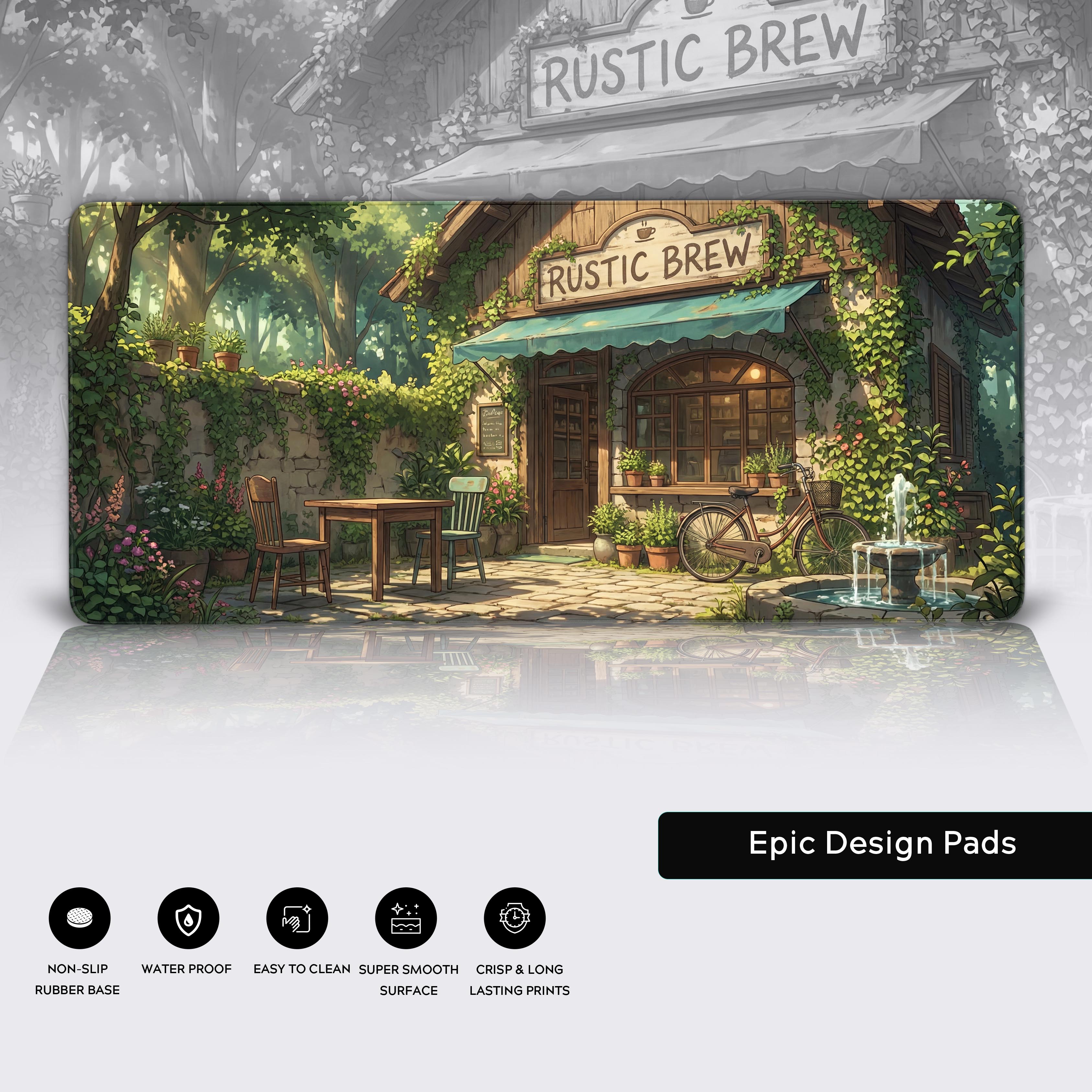 Tired of the constant digital noise? The Hidden Ivy Cafe desk mat transforms your workspace into a serene, sun-drenched courtyard. Inspired by the beauty of 'slow living,' this design features the charming "Rustic Brew" coffee shop, inviting you to pause, breathe, and find inspiration in tranquility.