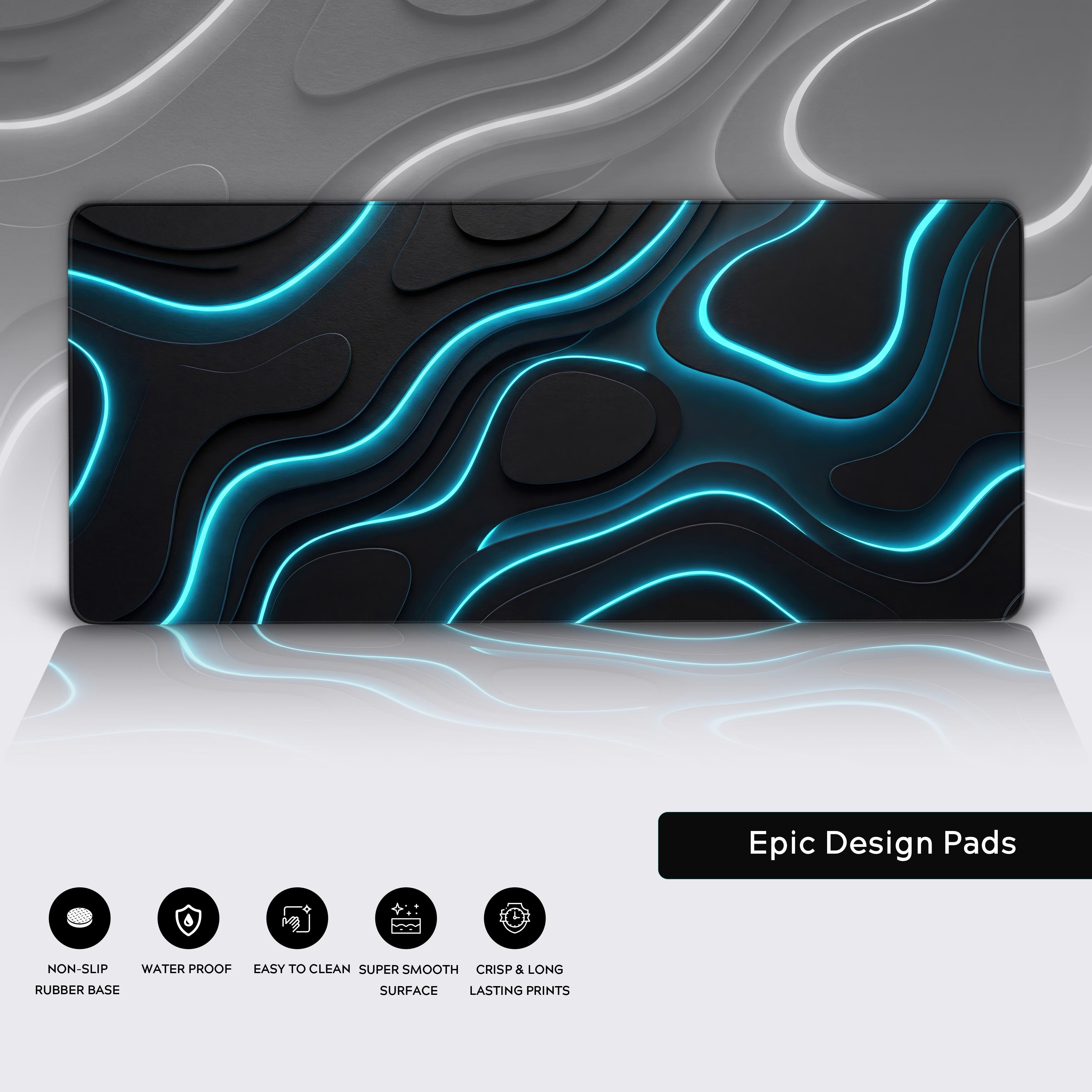Transform your desk into a command center of pure focus with the Neon Topography desk mat. Electric cyan light cuts through matte black layers, visualizing the silent, efficient flow of data. This isn't just a desk mat; it's a statement of cold, calculated precision, designed for the strategist and creator.
