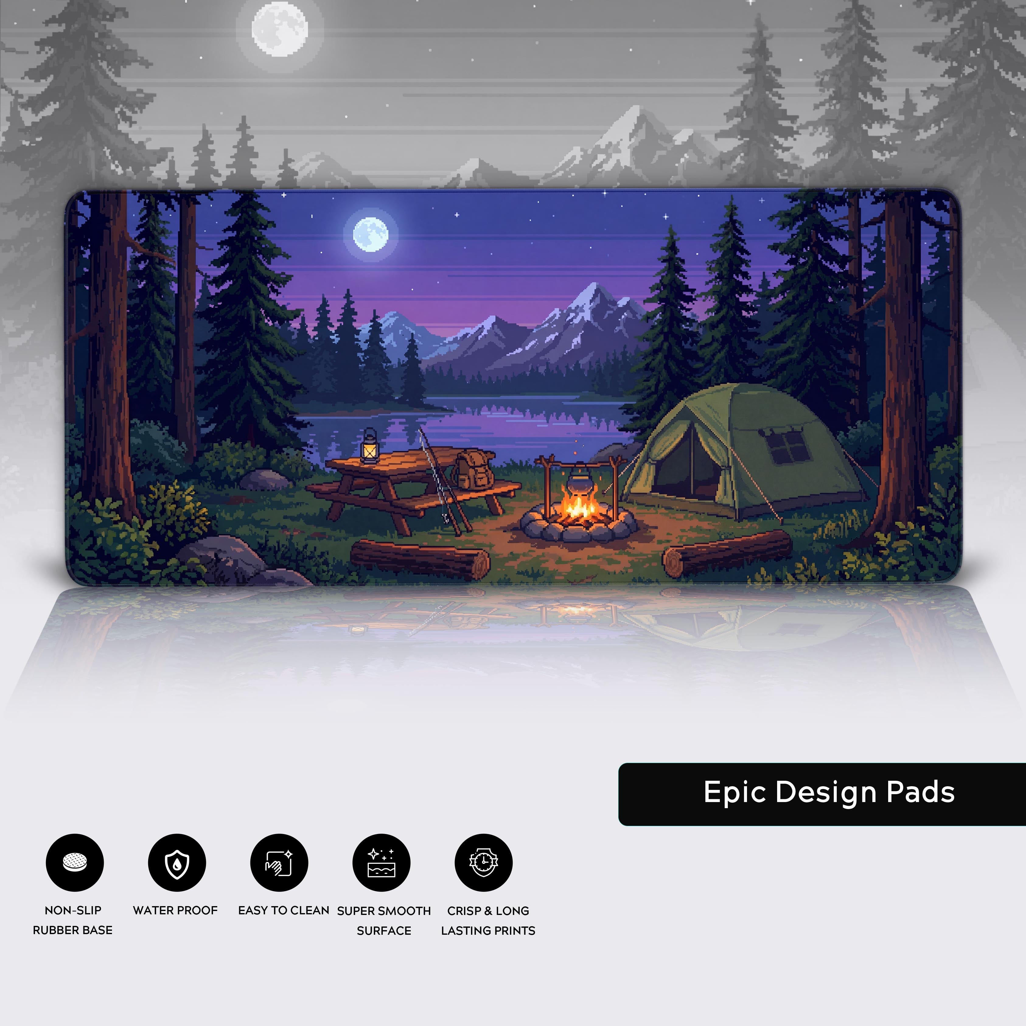 In a world of high-definition noise, escape to the simple tranquility of the Nightfall Camp. This pixel art desk mat captures the universal peace of a solitary campfire by a still lake, offering a visual sanctuary for your workspace. It’s a daily reminder that the most meaningful moments are often the simplest ones.