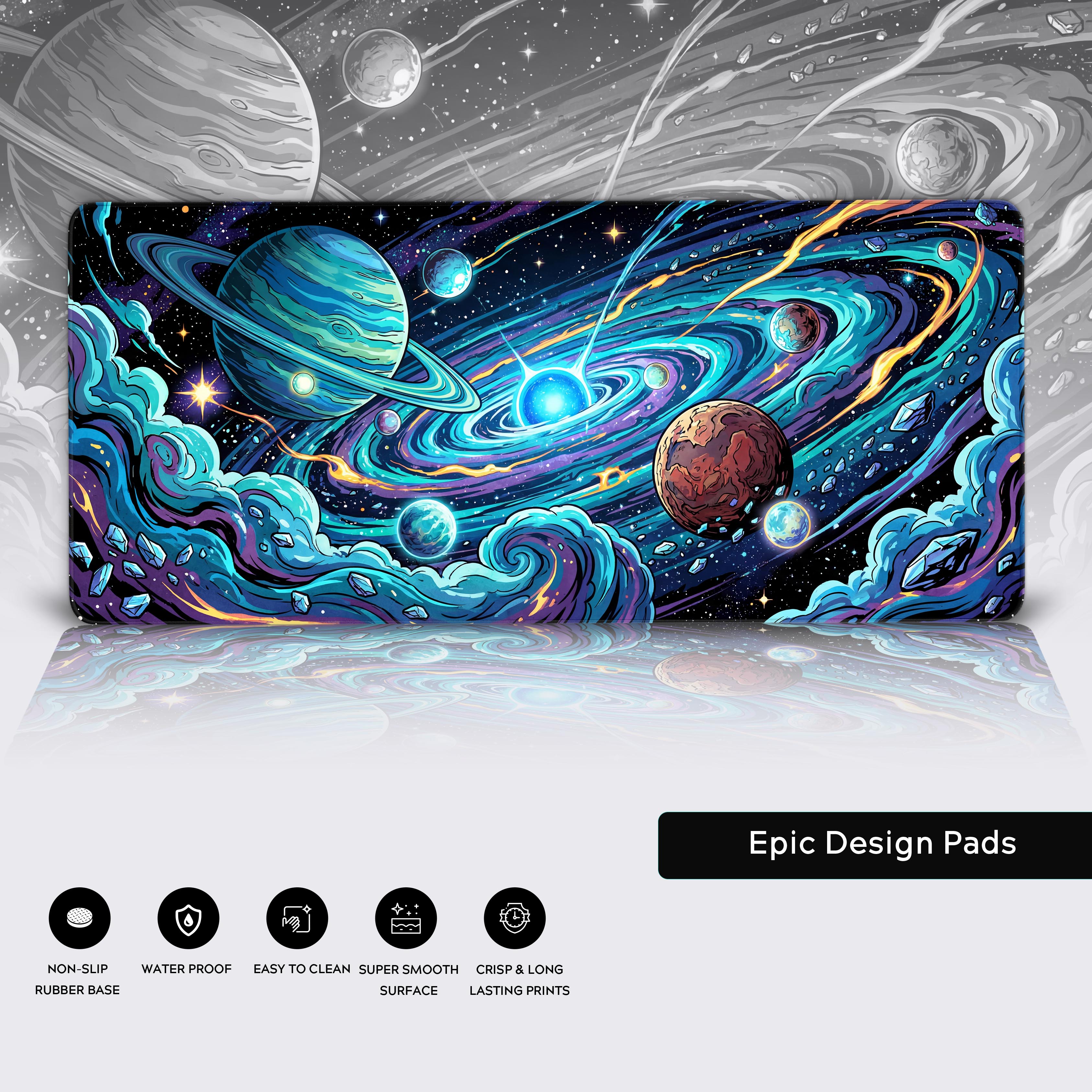 Stop staring at a blank desk. Command a universe and gain a new perspective with the Orbital Chaos mat.