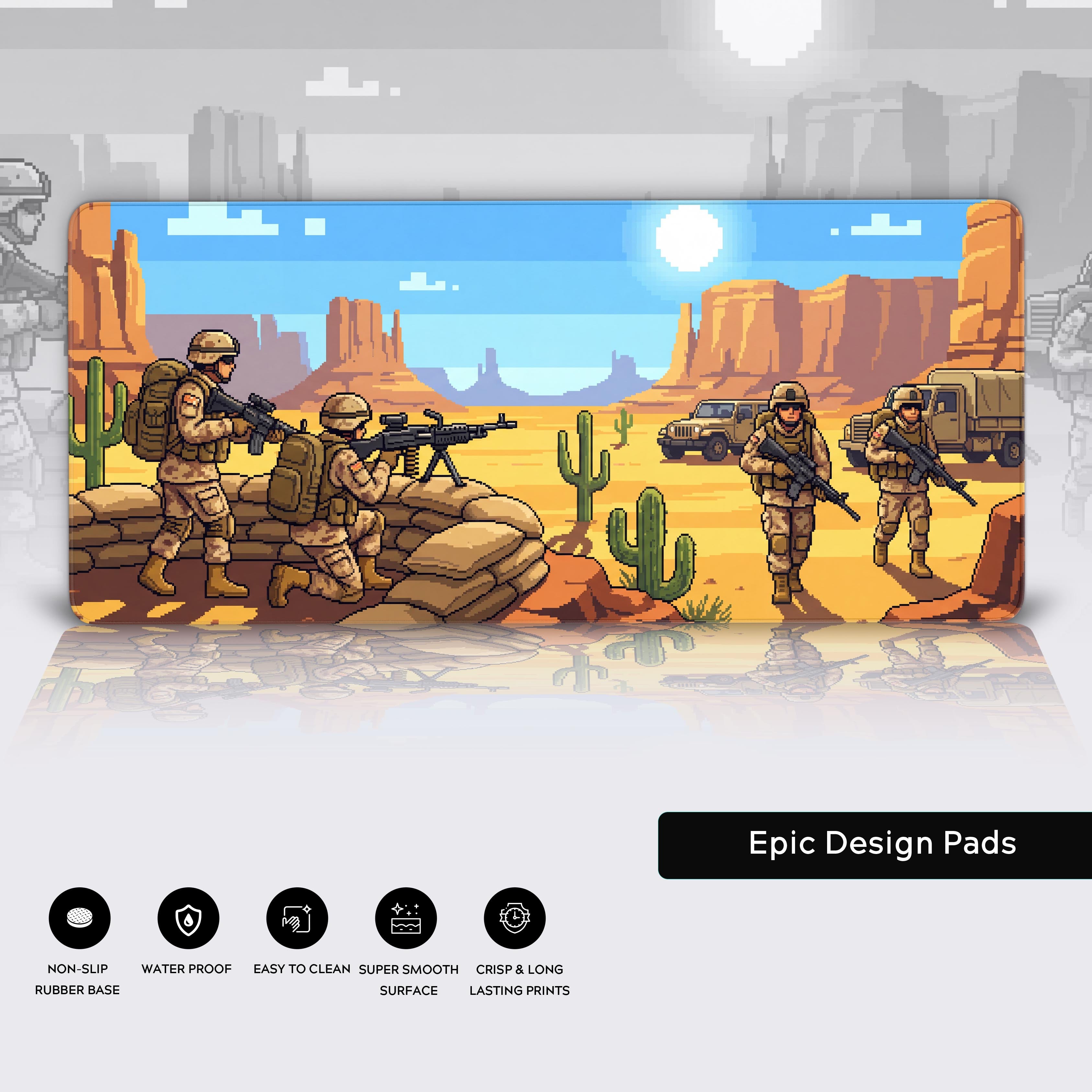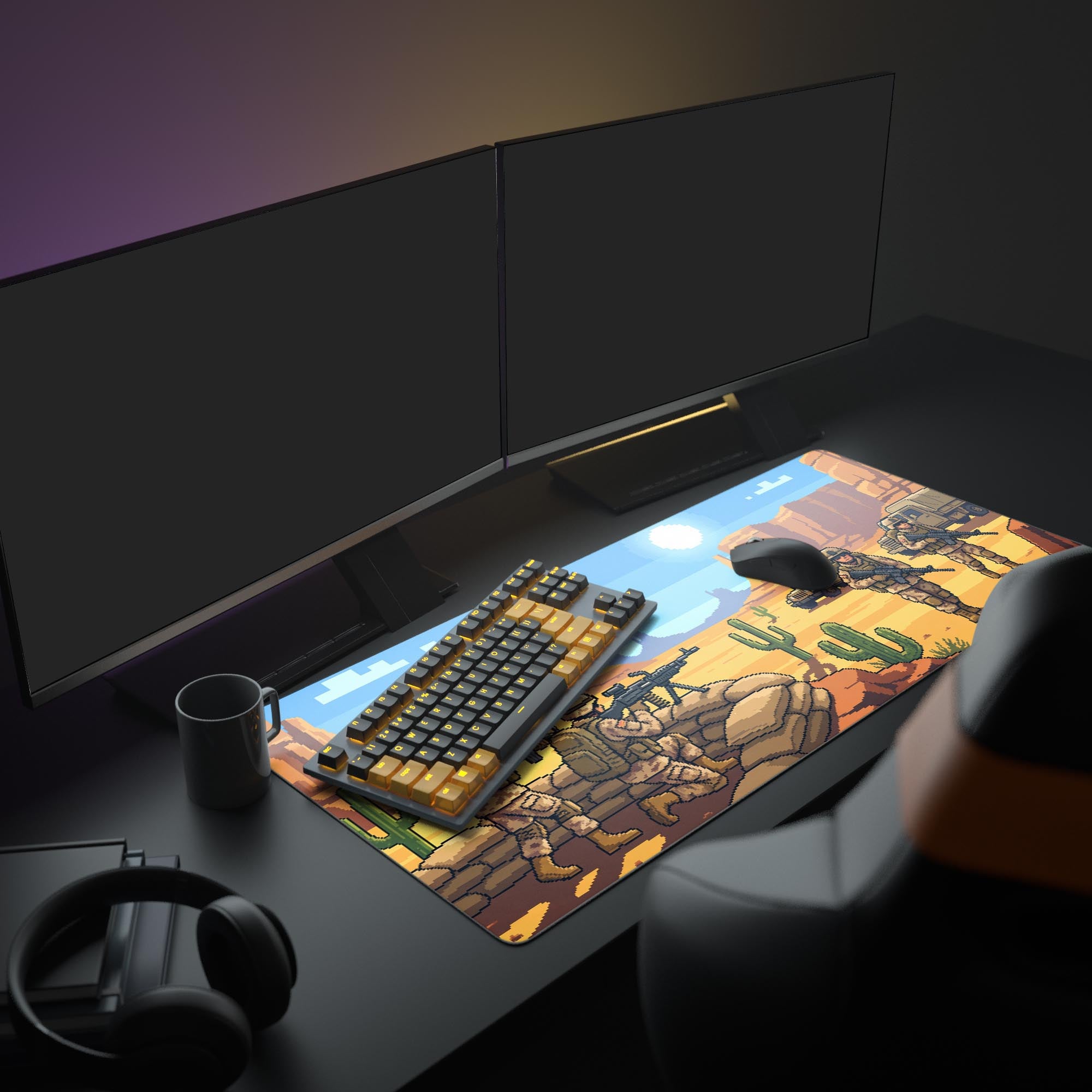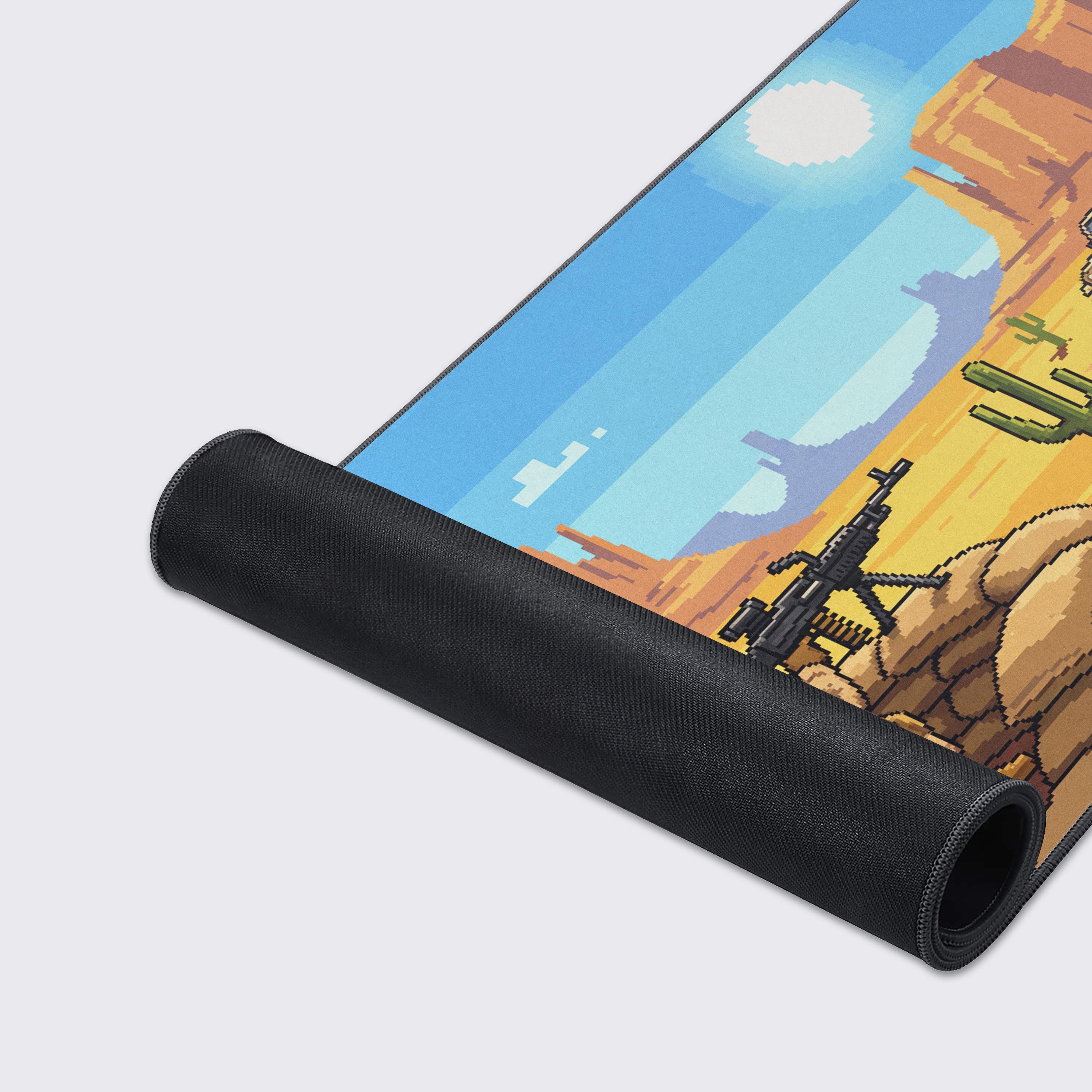 The sun beats down, but the mission is clear. The Outpost Zero desk mat brings the silent resilience of the vanguard to your setup. Rendered in a bold, nostalgic pixel art style, this design is a tribute to discipline, strategy, and the grit required to win when the heat is on.