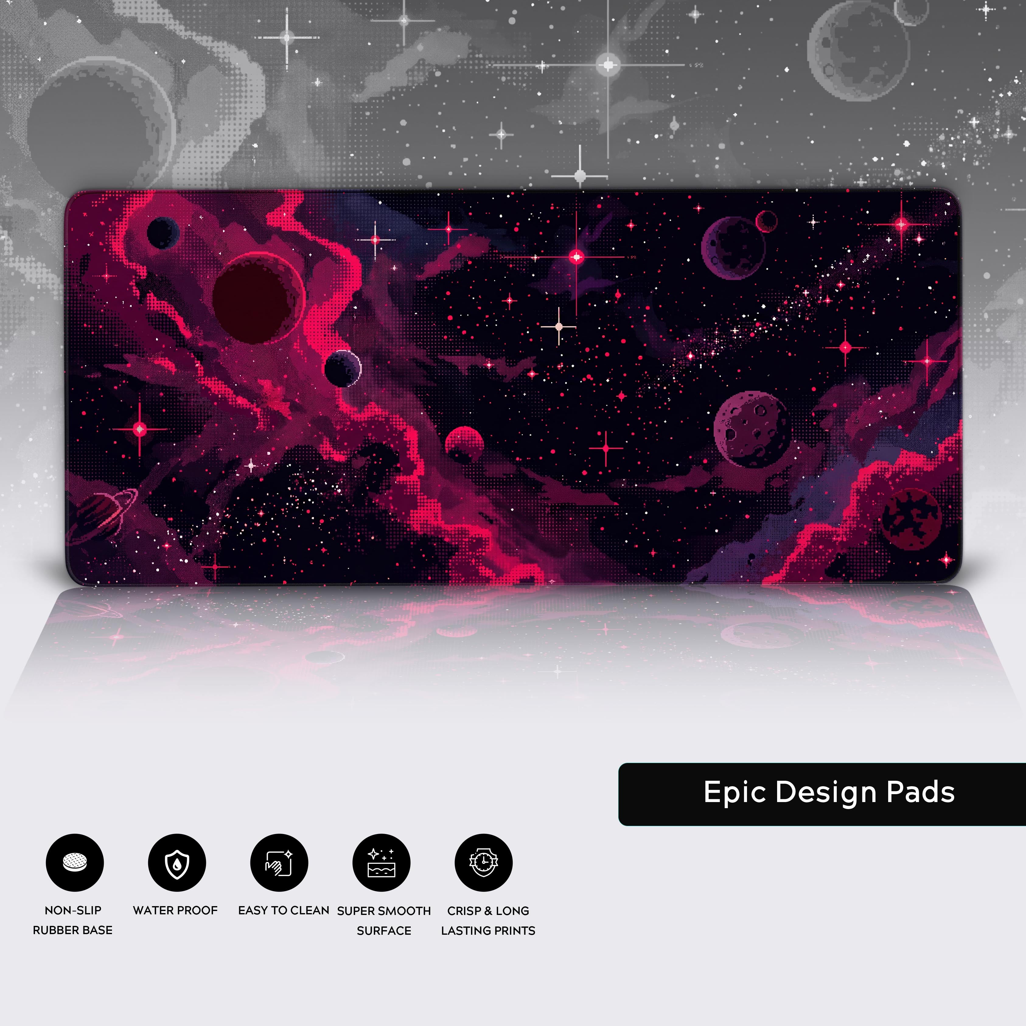 This isn't just a desk mat; it's a declaration. The Pixel Inferno design transforms your desk into a command center fueled by cosmic energy. Its explosive crimson and magenta nebula, rendered in a sharp 8-bit style, serves as a constant reminder of the raw power needed to create and conquer. Every pixel is a choice: success or failure, zero or one.