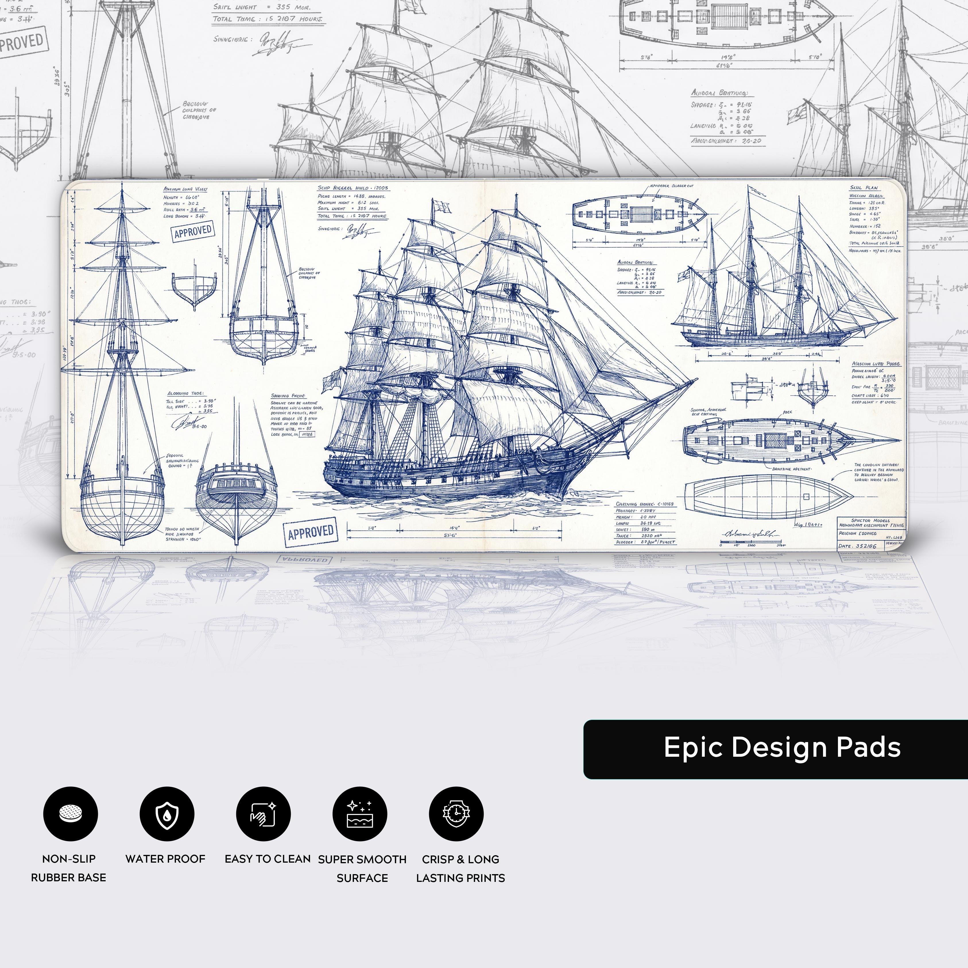 Every conquest begins with a plan. The Shipwright's Draft desk mat transforms your workspace into a master architect's table, detailing the very anatomy of adventure. This isn't just a design; it's a blueprint for discovery, celebrating the rigorous calculation and engineering required to command the seas. Let the intricate schematics and hull sections inspire your most strategic thinking.