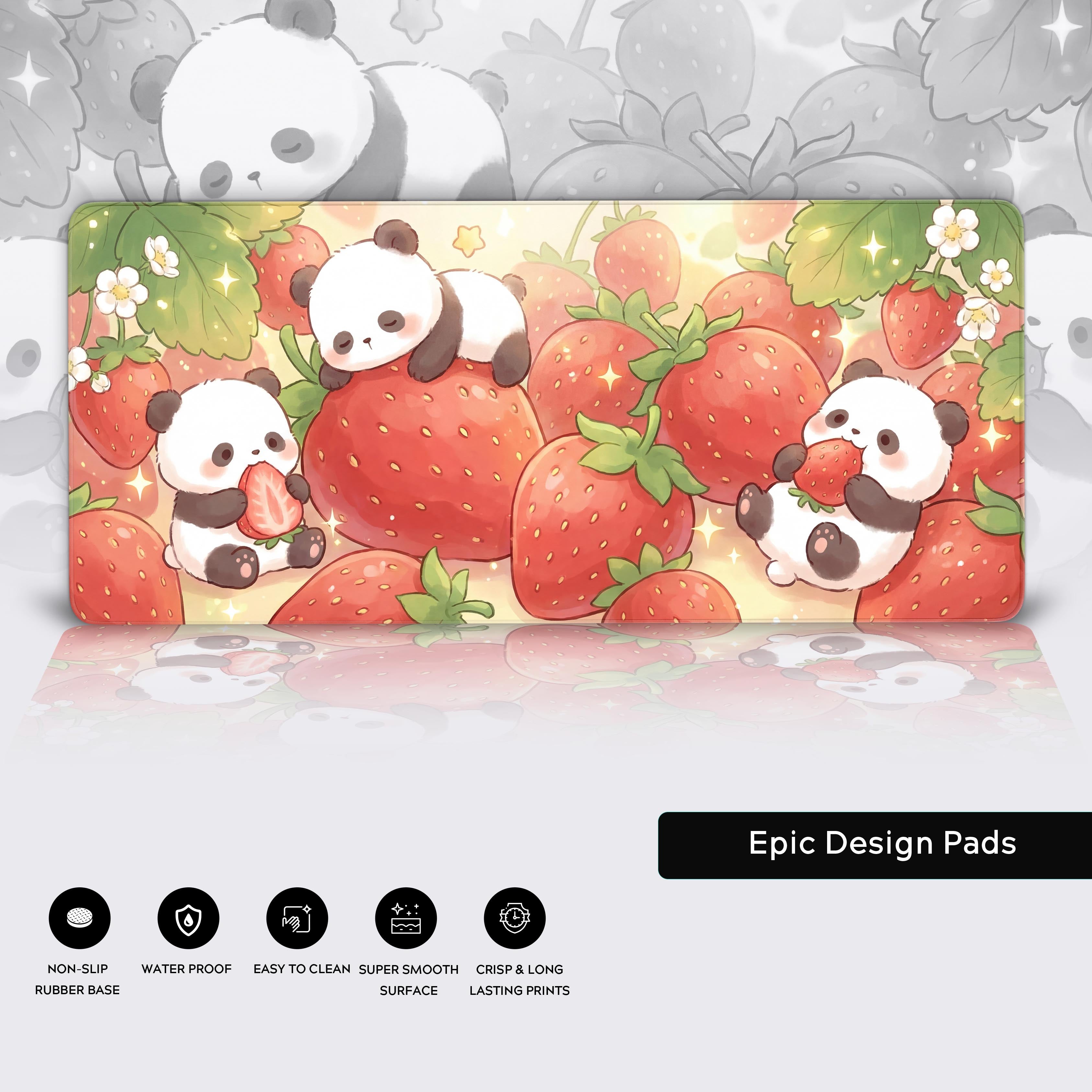 Step into a world of pure bliss with the Strawberry Dreamland desk mat. This charming design, featuring playful pandas lounging on giant, sun-kissed strawberries, transforms your desk into a sanctuary of positivity and abundance. It’s a daily reminder to enjoy the sweetness of life and find joy in the little moments.