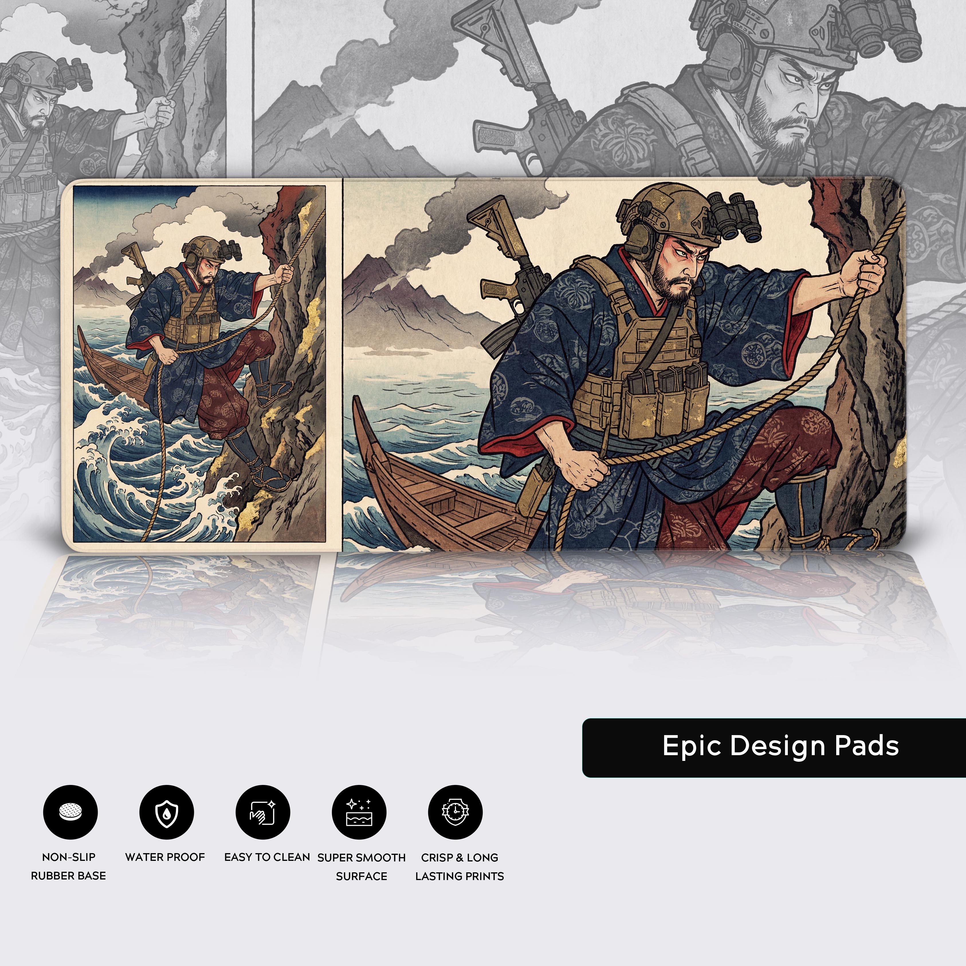 Your workspace is the cliff face; your goals are the summit. The Tactical Ascent desk mat merges the unyielding discipline of the samurai with the lethal precision of modern warfare, rendered in a stunning Ukiyo-e art style. It's a stark reminder that the climb is eternal, demanding both ancient resilience and modern execution.