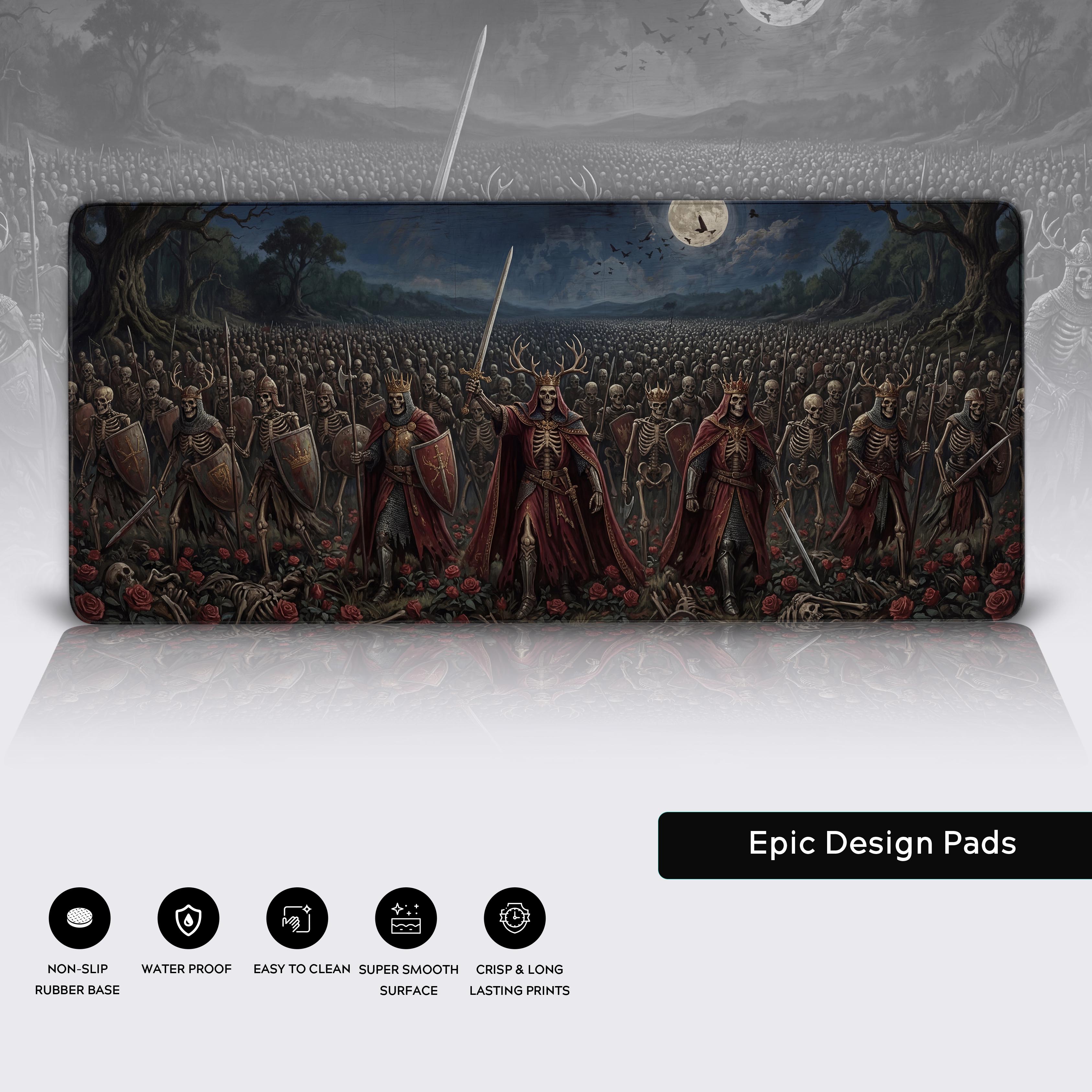 Your desk is your battlefield. Command it with the Undead Rose Army desk mat, a monument to unyielding ambition. This dark fantasy epic features a skeletal legion marching through a field of crimson roses, a stark reminder that true growth requires ruthless focus.