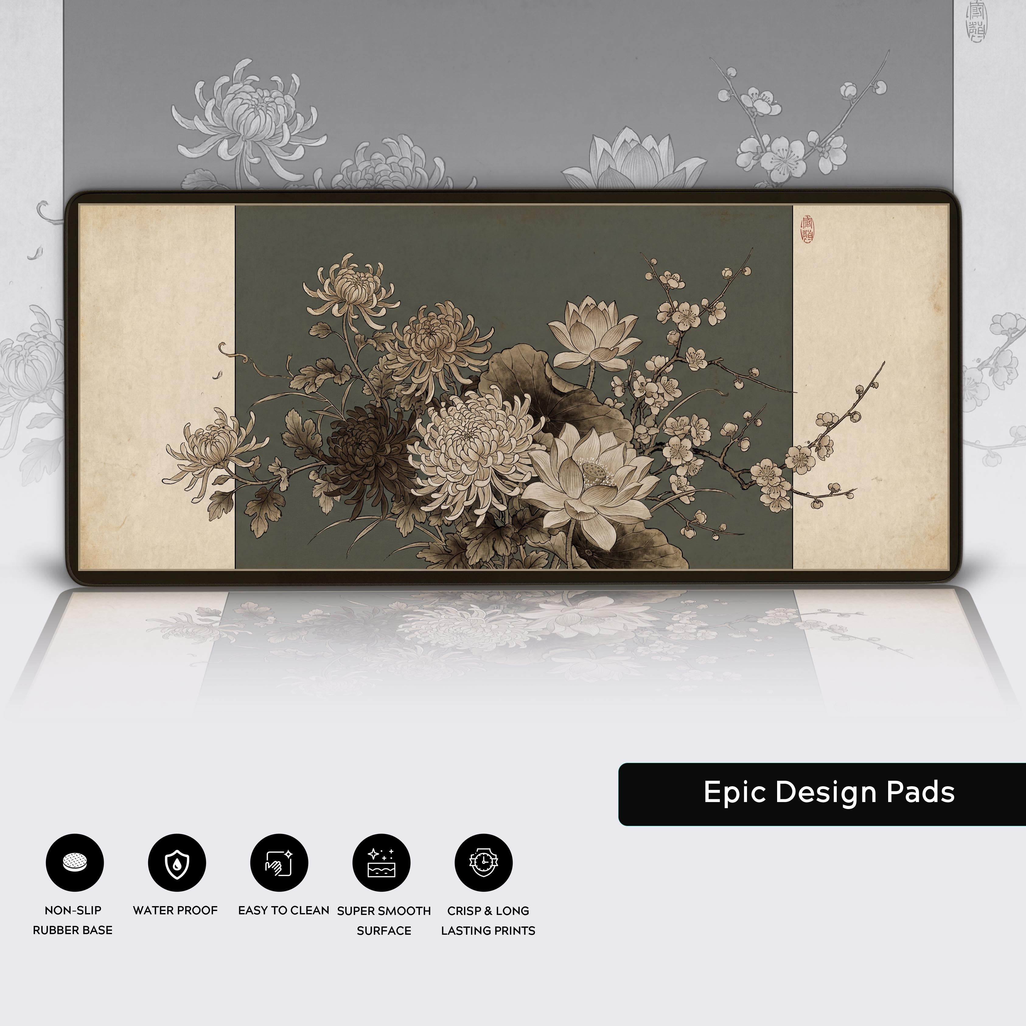 In a world of digital chaos and RGB glare, the Antique Bloom desk mat offers a sanctuary of calm. Inspired by the deliberate grace of traditional ink wash painting, this design turns your desk into a space for clarity and deep work.