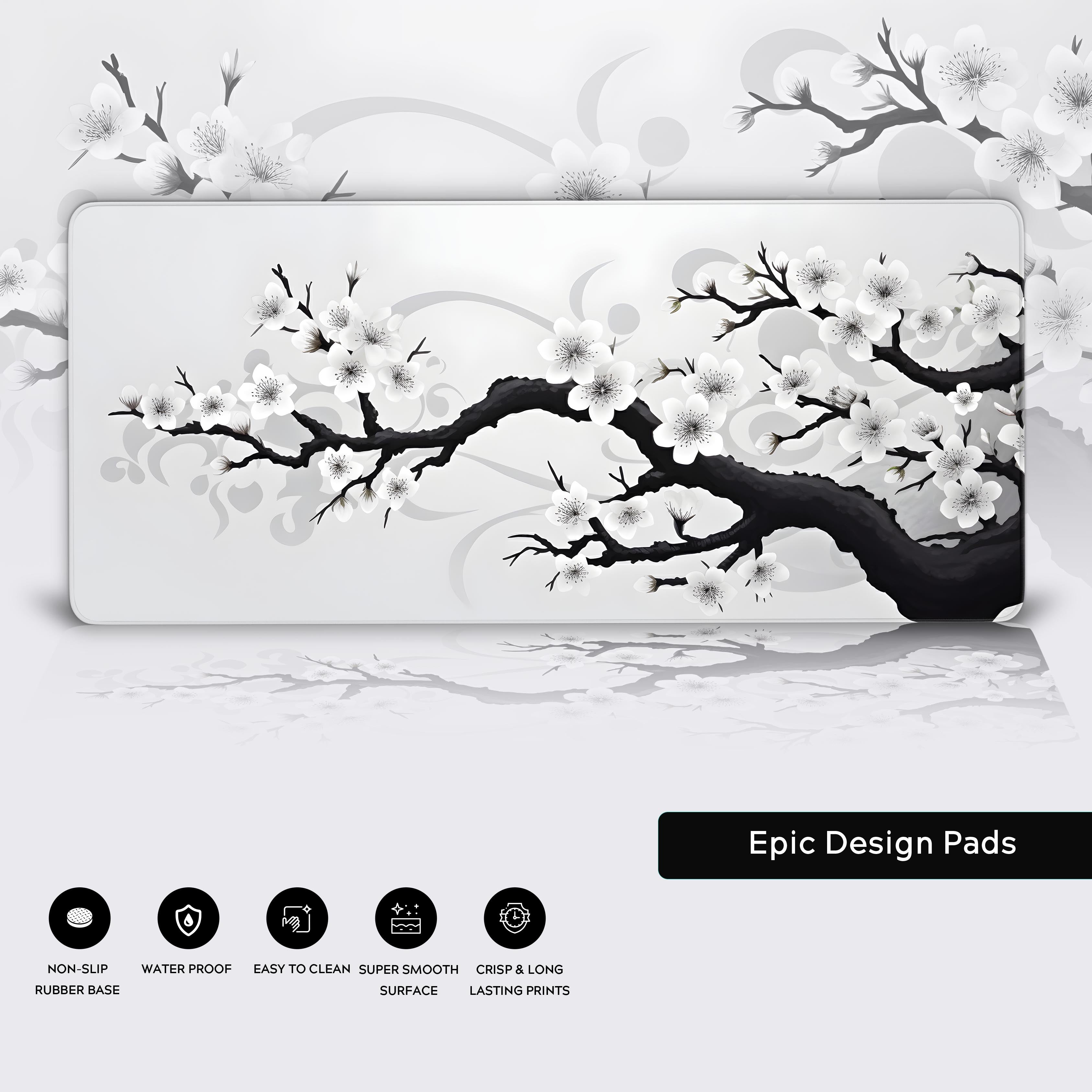 Transform your workspace with the Black & White Sakura Desk Pad. Immerse yourself in the intricate elegance of cherry blossoms, beautifully captured in a monochromatic design. This premium desk mat not only elevates your aesthetic with its timeless charm but also serves as a practical accessory for your office or gaming setup.