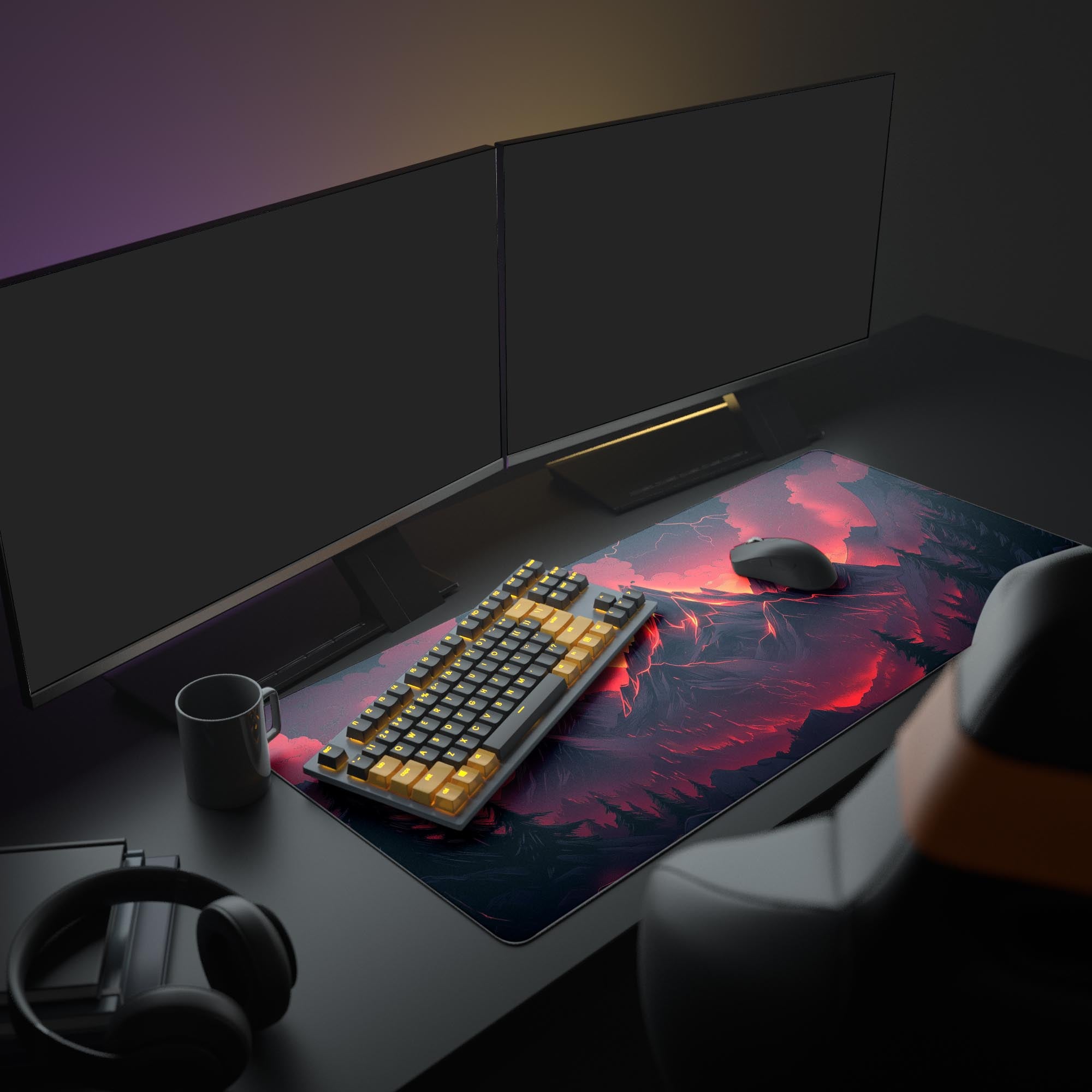 Make a statement with the Crimson Mountains Desk Pad and become the envy of your friends. Its bold, otherworldly aesthetic brings a dramatic flair to any setting, combining functionality with stunning design. Elevate your desk experience today.