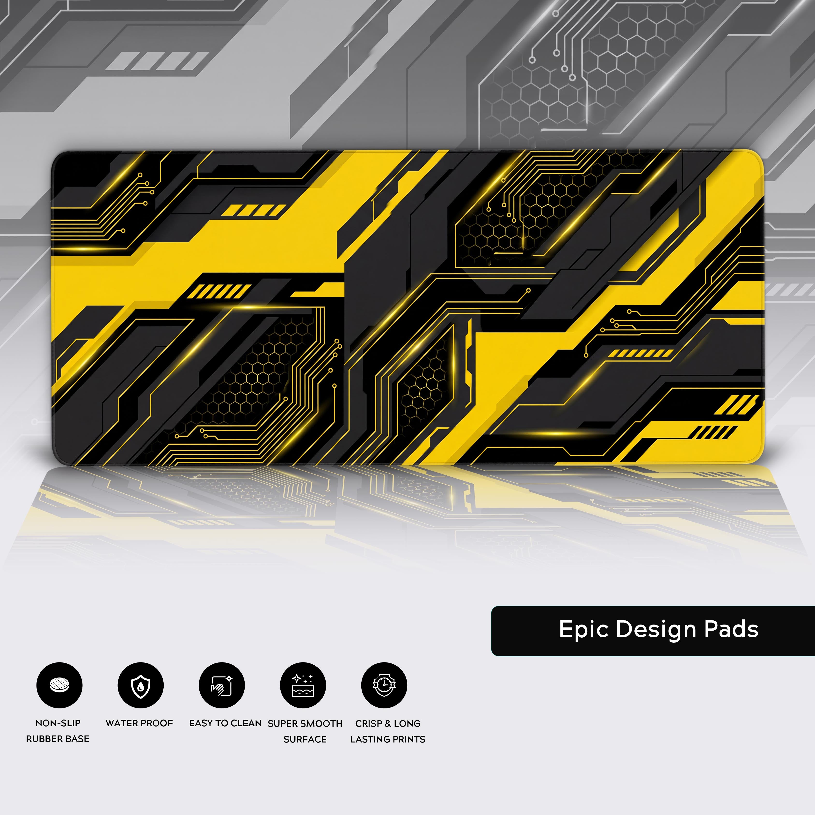 Is your desk setup holding you back? Shock your system with the Cyber Circuit Desk Mat. This isn't just a surface; it's a statement piece designed to fuse industrial aggression with sleek, digital precision. The striking hazard yellow and deep charcoal grey colorway brings a high-contrast, mecha aesthetic directly to your battlestation.