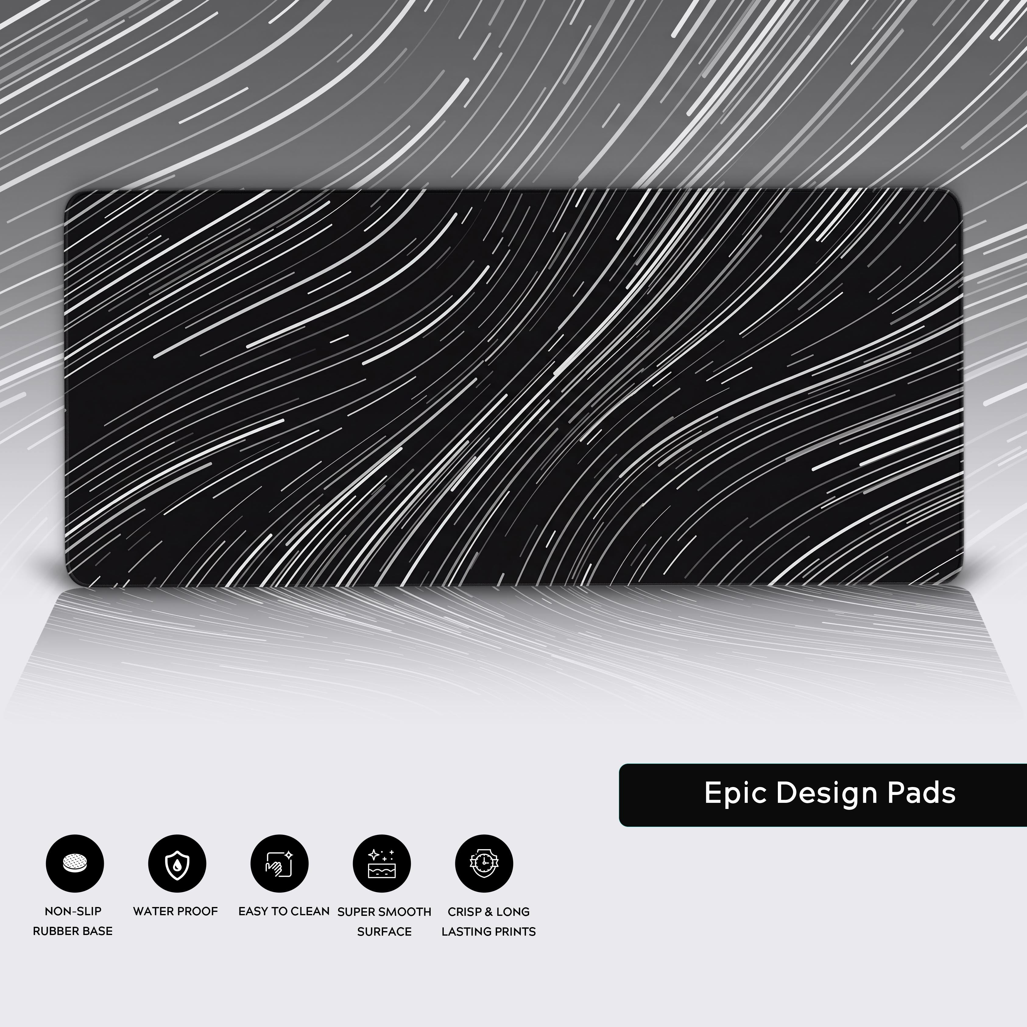 Our desk pads are crafted with a smooth, water-resistant surface for precise mouse movement and easy cleaning, paired with a non-slip rubber base to keep it firmly in place.