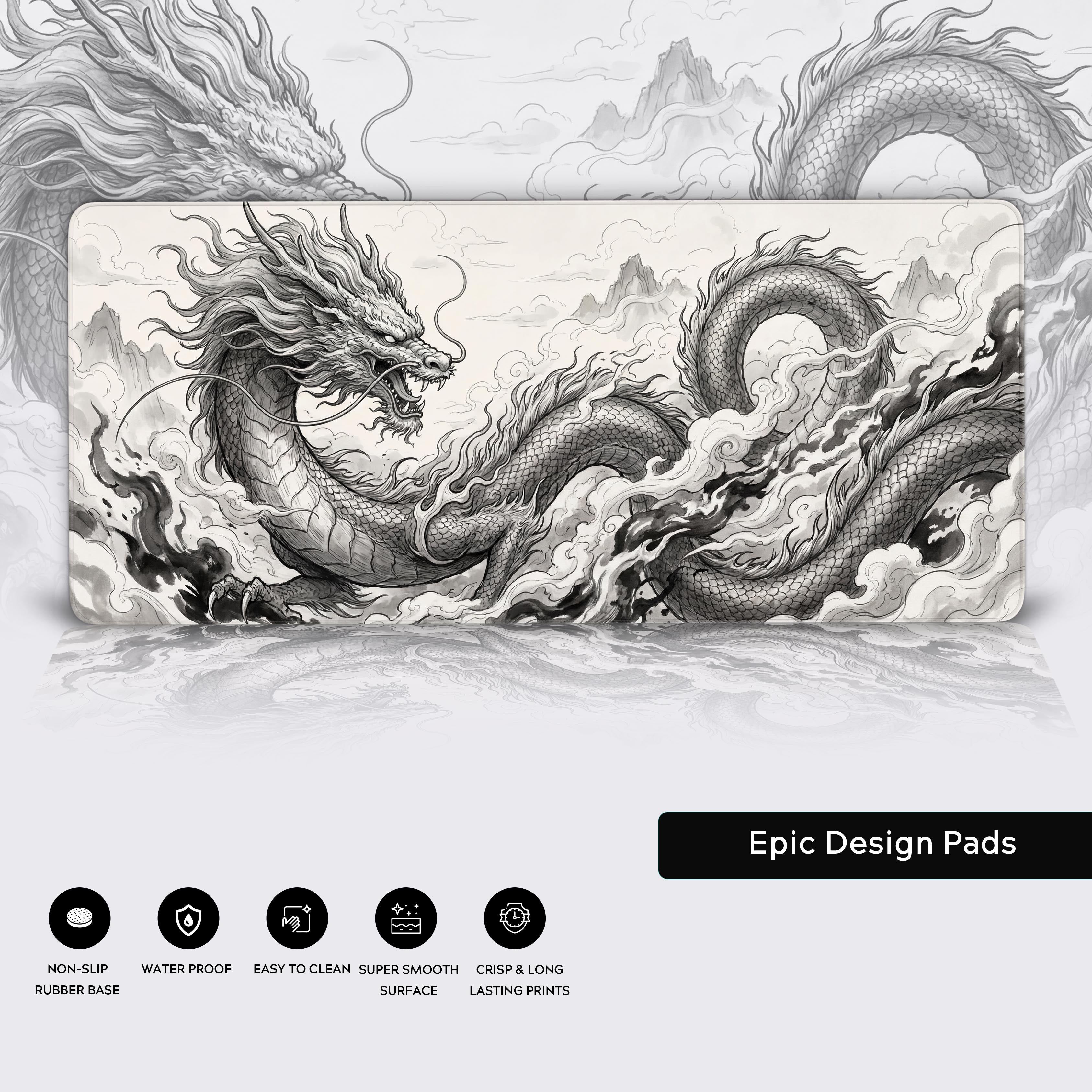 Transform your workspace with the Ink Ascendant desk mat. This design captures the timeless symbol of mastery and ambition—the celestial dragon—rendered in the stunning, fluid style of traditional ink wash painting. Every stroke embodies motion, energy, and unwavering focus.