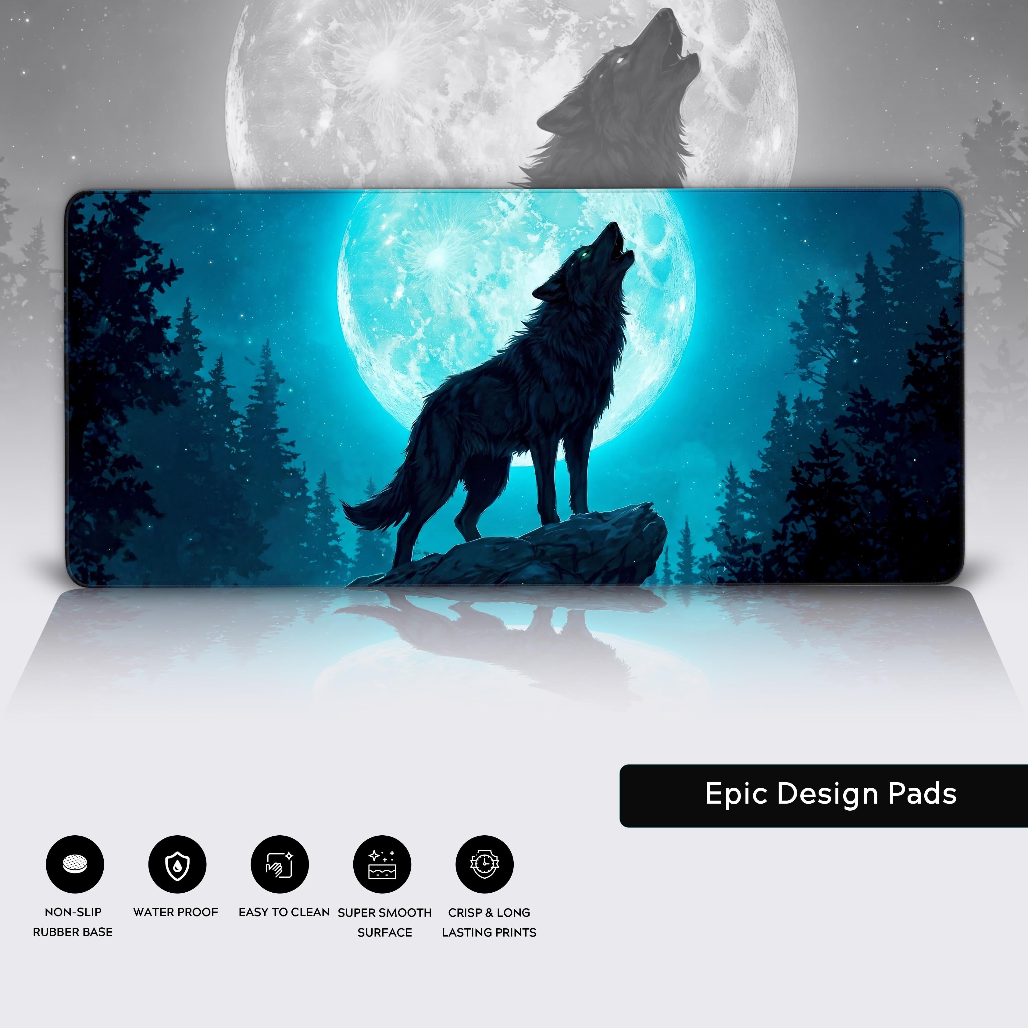 Does your desk feel uninspired? Transform it into a sanctuary of focus with the Lunar Call desk mat. This isn't just a surface; it's a statement. Bathed in a serene cyan glow, a lone wolf calls to the supermoon, awakening the untamed spirit within you and turning your workspace into an epicenter of clarity and power.