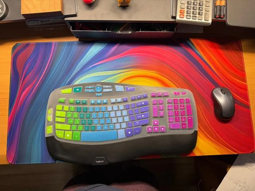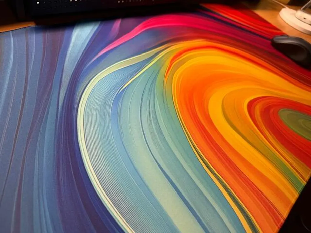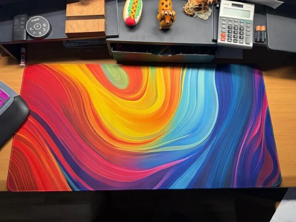 Transform your workspace with the Retro Wavy Desk Pad, the ultimate desk accessory combining style and function. Every keystroke, mouse click, and gaming session will be unmatched with our eye-catching psychedelic design and superb build quality. Inspired by the dynamic art of the 70s, this desk mat features vivid rainbow patterns that swirl and intertwine, making every desk vibrant and inviting.