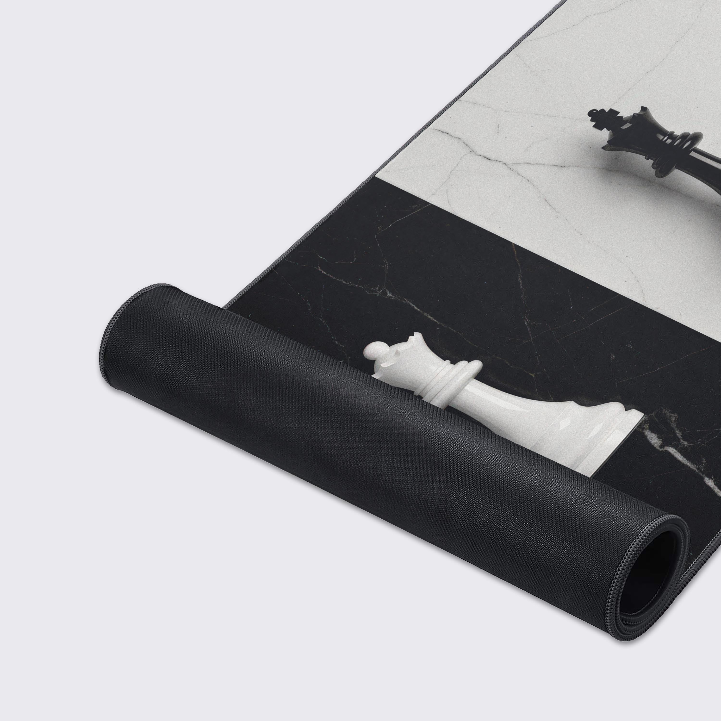 Transform your workspace into a strategic arena with the Royal Standoff Desk Mat. This isn't just a surface; it's a statement piece. A stunning split of black and white marble sets the stage for the ultimate intellectual duel: a powerful black king versus a graceful white queen, designed for the modern strategist and elegant professional.