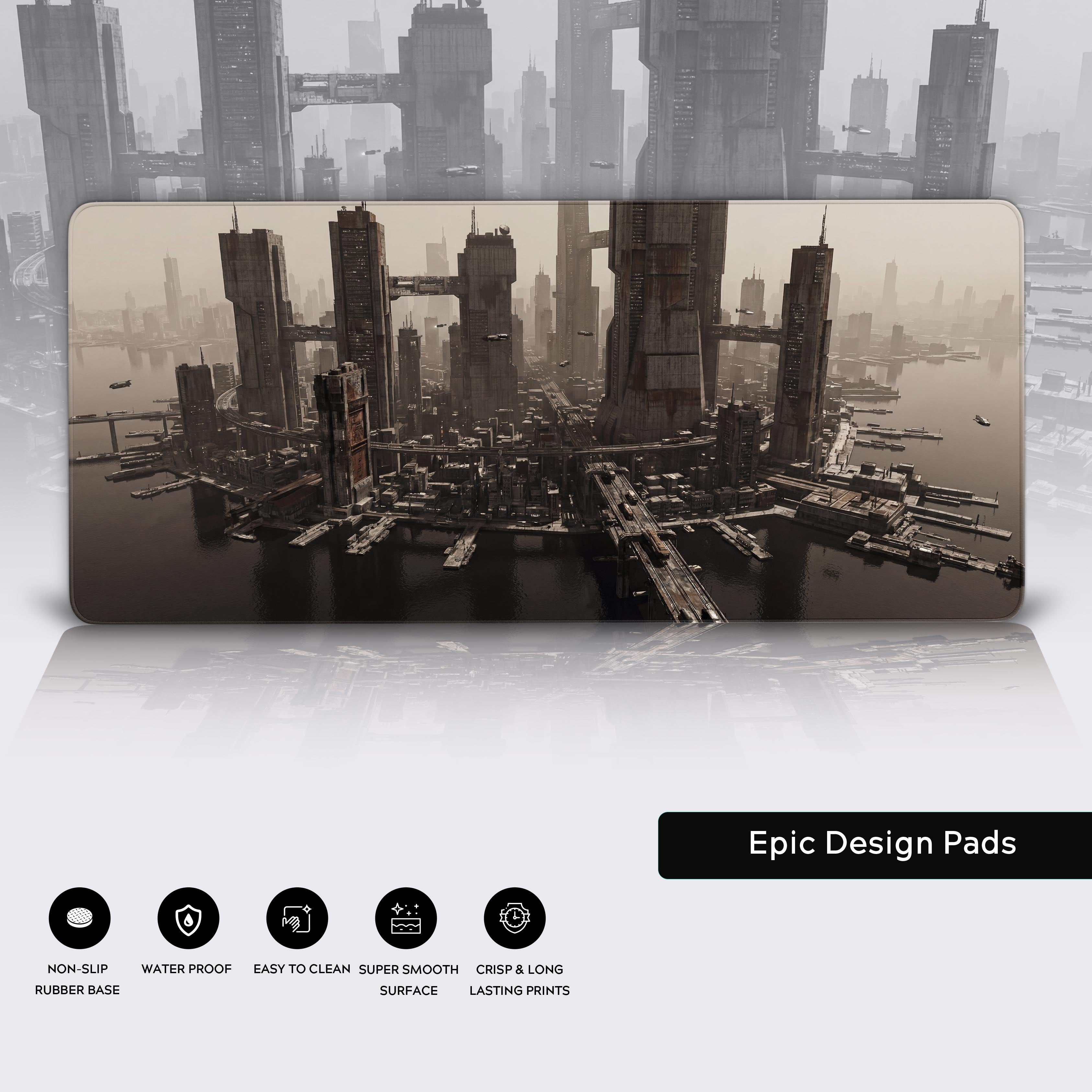Tired of a bland, uninspired workspace? Transform your desk into a command center with the Rust Metropolis Desk Mat. This isn't just a surface; it's a statement—a sprawling industrial city rising from the haze, built to inspire resilience and unshakeable focus.
