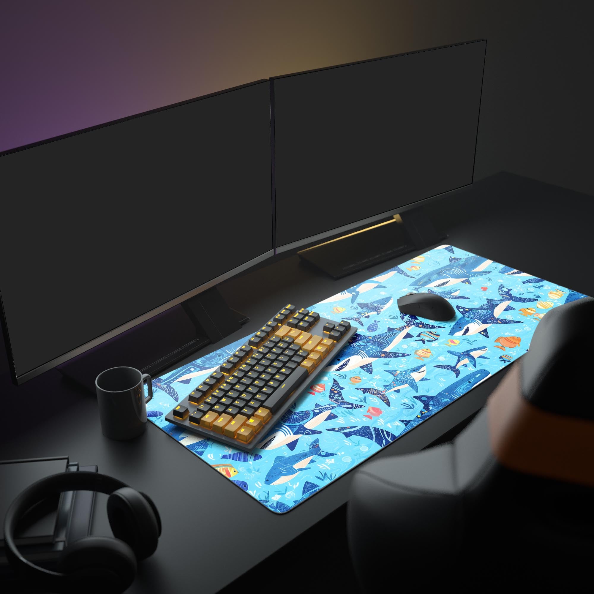 Transform your workspace with the Sharks and Fish Desk Pad, where functionality meets whimsical charm. This desk mat not only protects your desk but also elevates your office or gaming space with its vibrant and playful design.